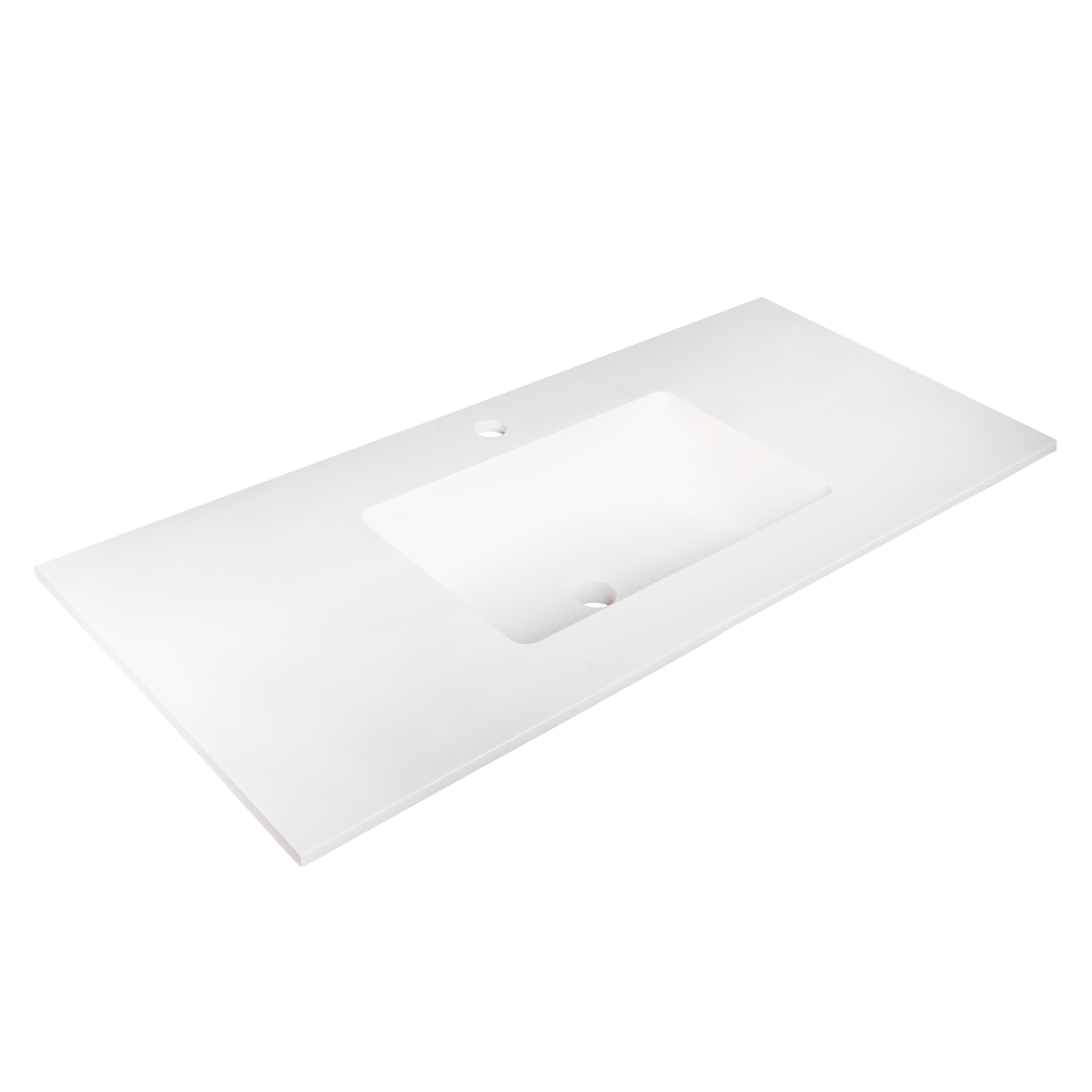 Lavabo de encimera modelo Solid, extraplana, en color blanco y con medidas 101x46x1,2cm.