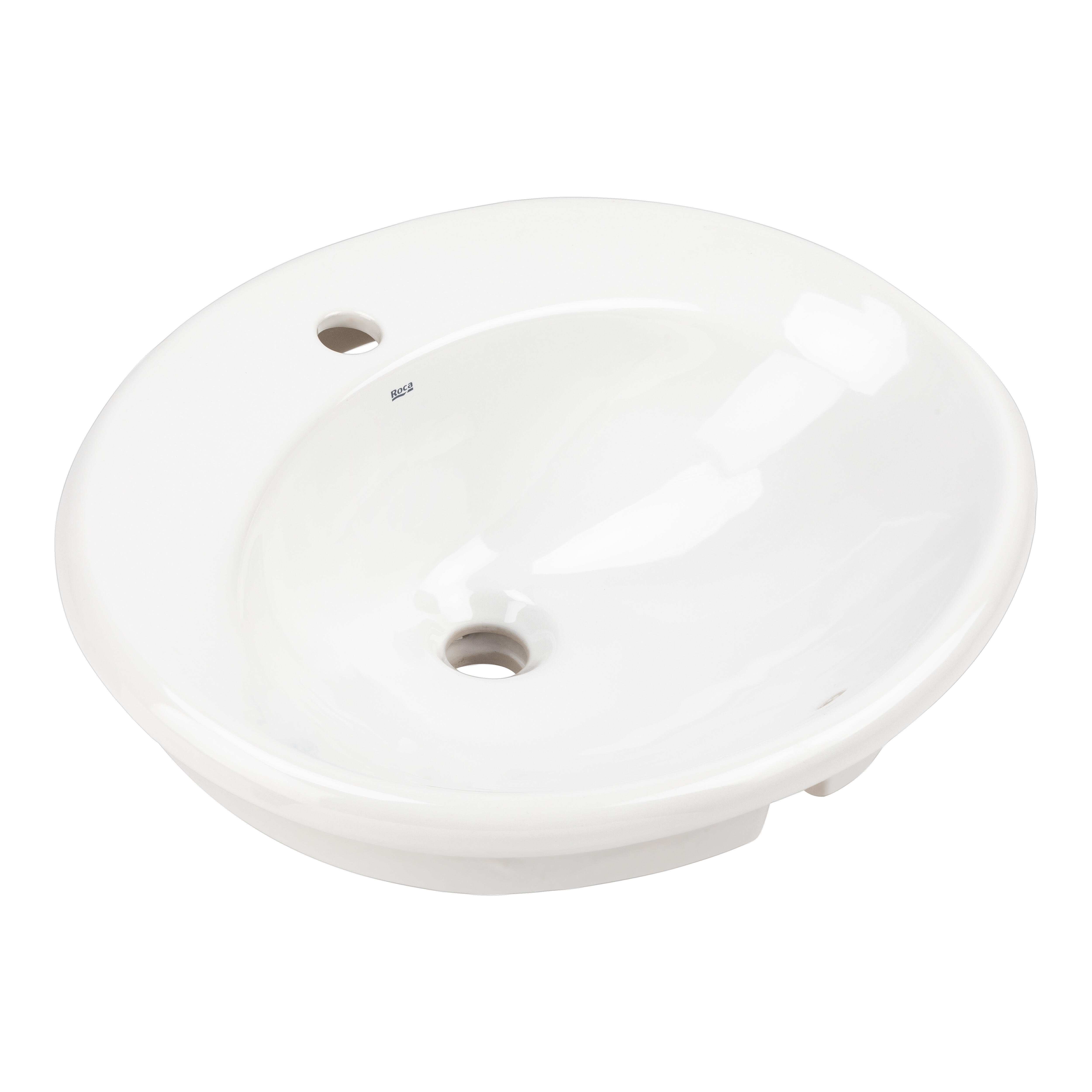 Lavabo encastrado Roca, modelo Java. En color blanco y medidas de 56x47,5x19cm.