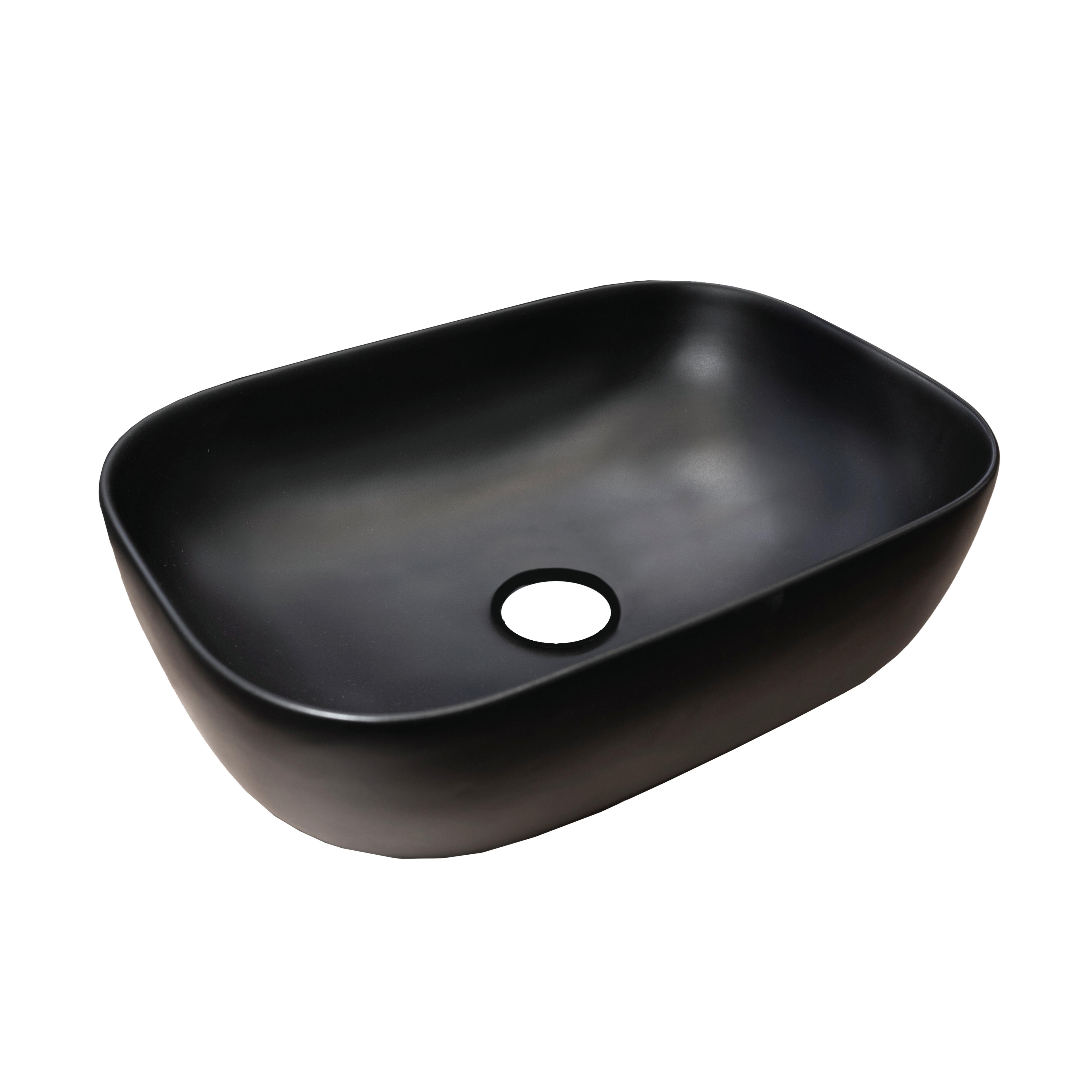 Lavabo de sobreponer modelo Mónaco, de color negro y medidas 46x34x14cm.
