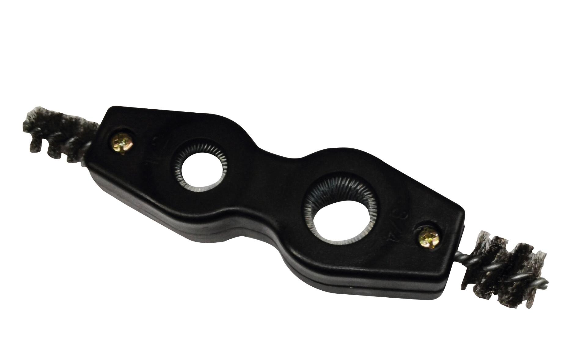 Limpiador de tubos para tubos de metal. Cuerpo en plástico ligero. Longitud 195mm. Permite la limpieza de las extremidades interiores y exteriores.