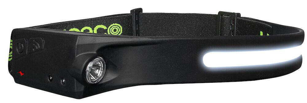 Linterna frontal led recargable 350lm+150lm Luceco. IP20 no resistente al agua. Alimentación por carga usb. Con cuatro posiciones de iluminación. Sujección frontal.