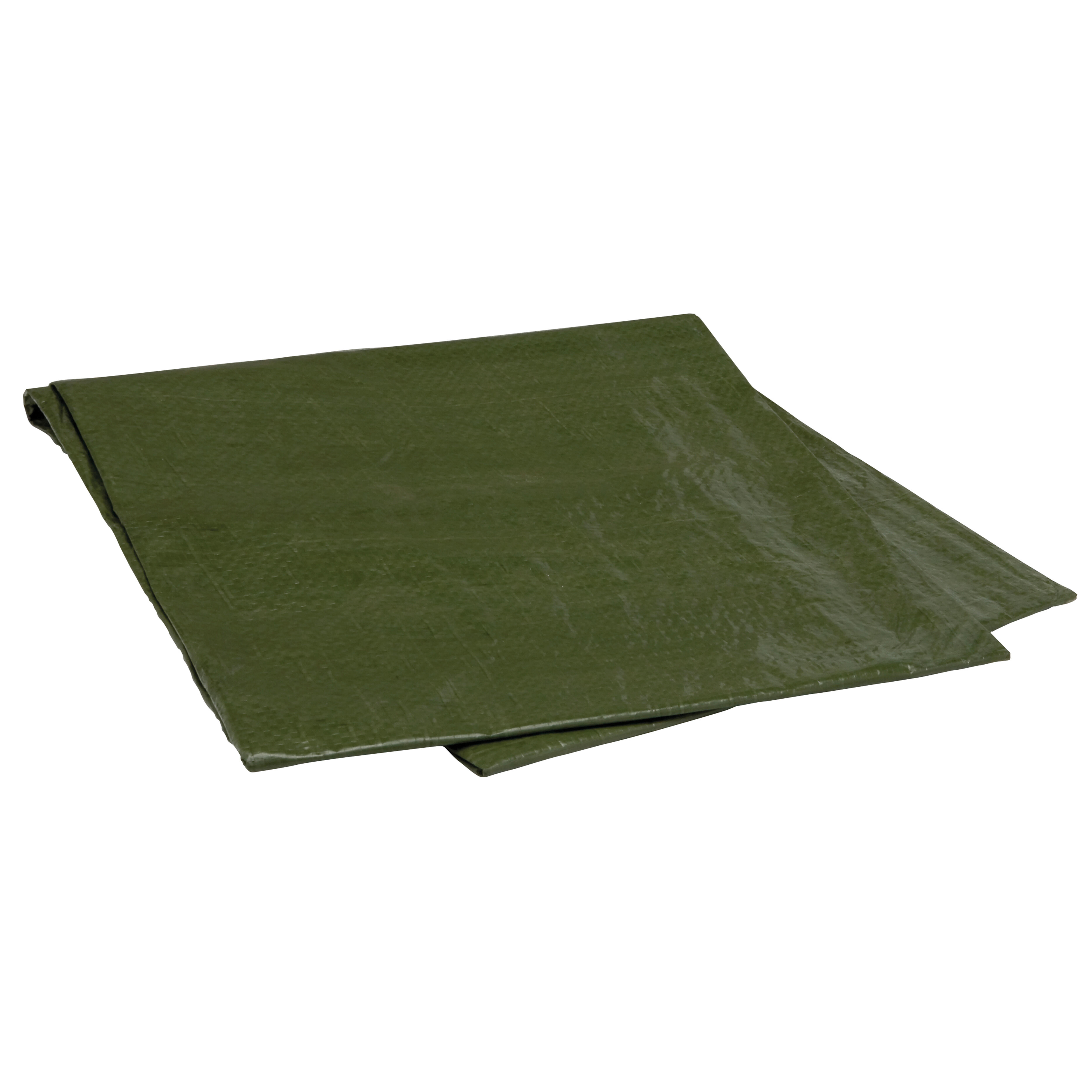Lona verde de protección impermeable con anillas indicada para cubrir y proteger todo tipo de materiales. Fabricada en rafia tejida con polietileno y tratamiento ante UV. 80 gr/m².
