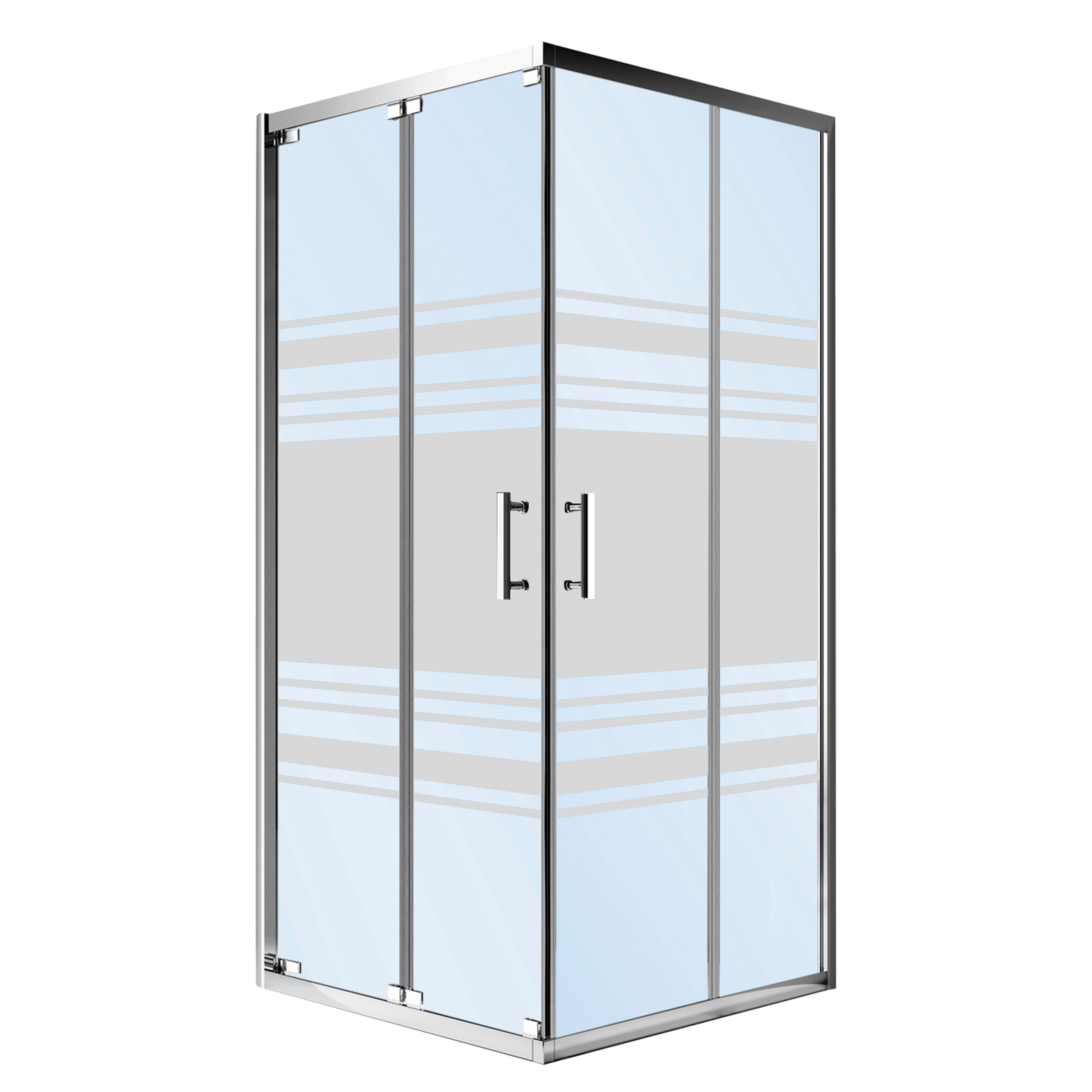 Mampara de ducha cuadrada corredera serie Sofía. Medidas 70x70cm. Cristal serigrafiado de 5mm. Perfil en aluminio cromado.