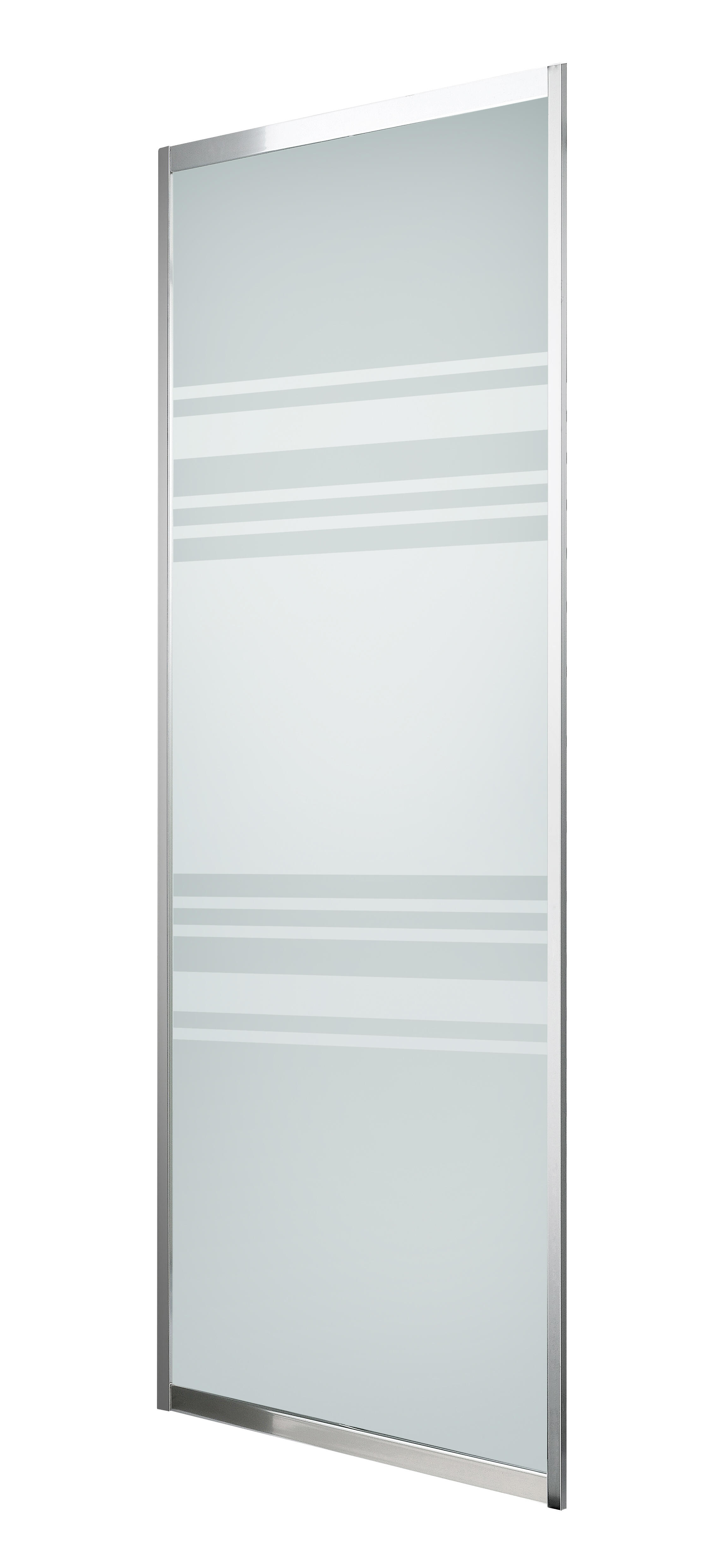 Alto 185 cm.1 puerta fija. Cristal serigrafiado de 6 mm de espesor. Perfil en aluminio cromado.