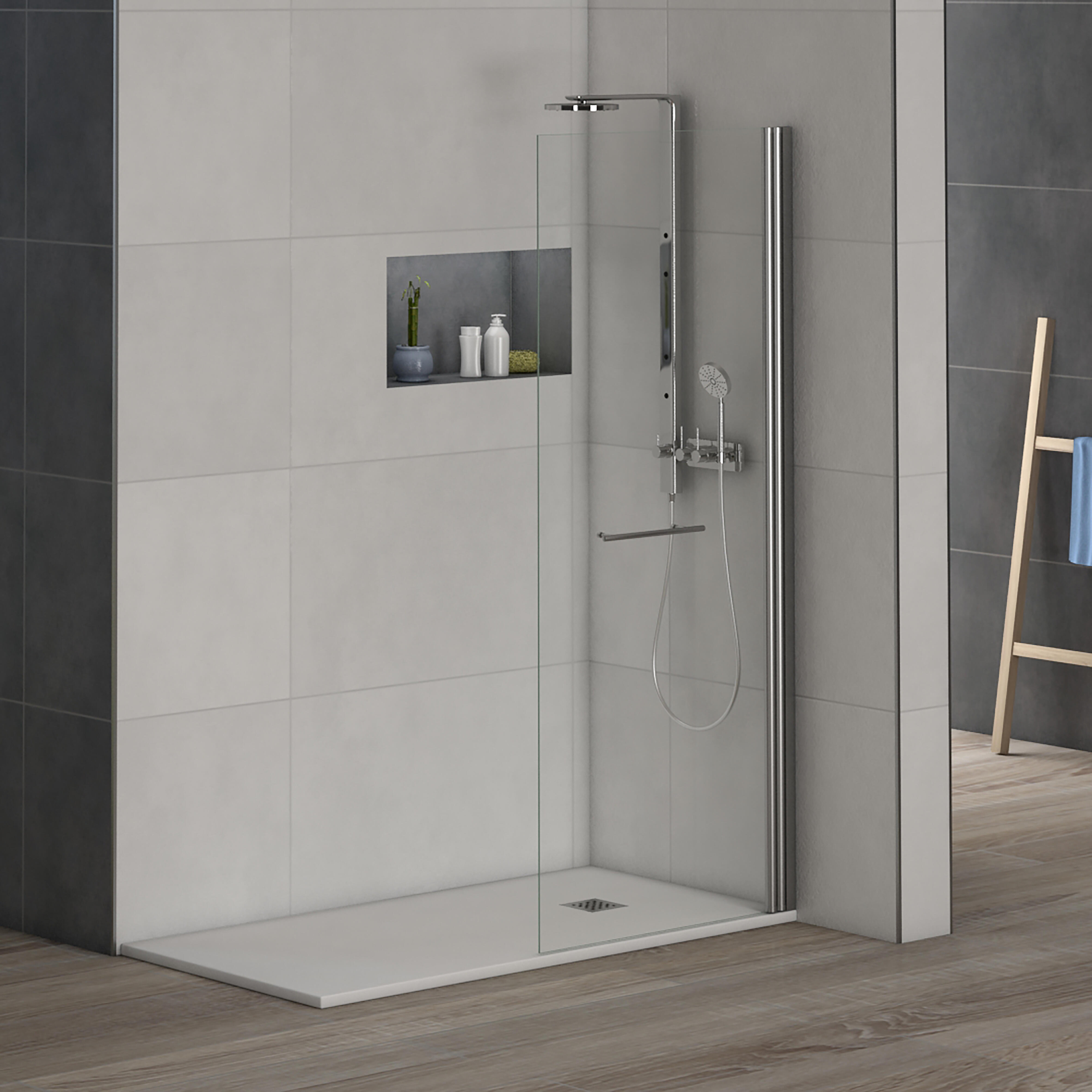 MAMPARA PANEL DE DUCHA ABATIBLE CARIBE 100CM CROMO