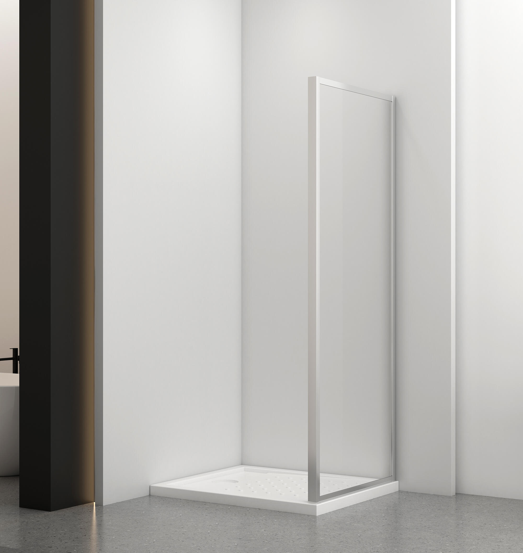 Mampara panel de ducha lateral fijo de la serie Utirik. Medidas 80cm. Cristal transparente de 6mm. Perfil en aluminio cromado.