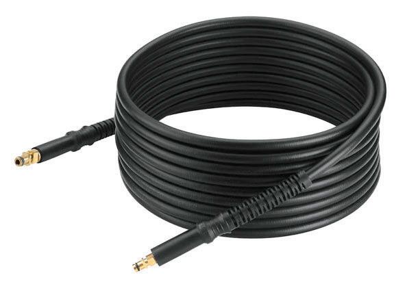 Manguera de alta presión de repuesto de 9 m para las limpiadoras de alta presión de Kärcher (K2-K7) a partir del año 2009, en las que la manguera se fija a la pistola y al equipo con un conector de acción rápida Quick Connect. La manguera de repuesto soporta una presión de hasta 160 bar y está diseñada para temperaturas de hasta 60 °C.
