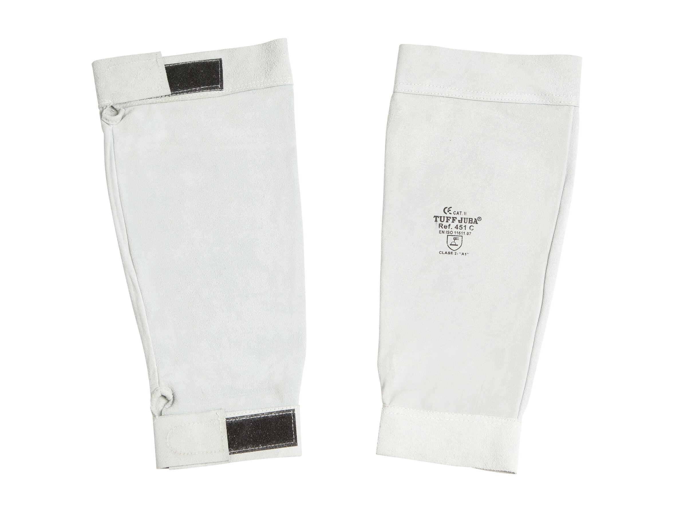 Manguito de serraje hasta el codo. Ajuste con velcro en ambos extremos. Largo de 44 cm. Grosor de 1 - 1,2 mm. Color natural. EN ISO 11611:2015 - Prendas de protección para soldadura y procedimientos similares.
