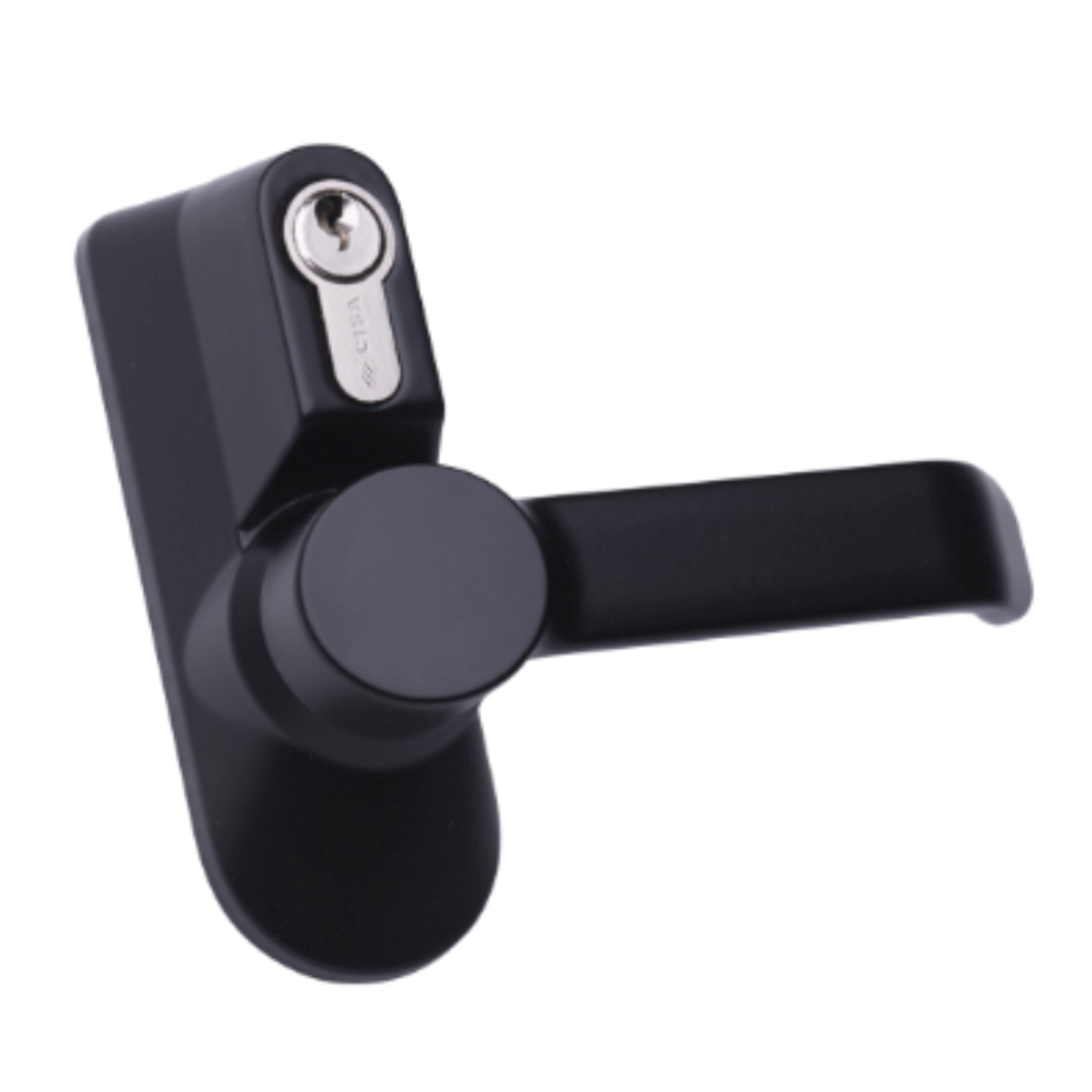 Manilla antipánico con cilindro con perfil europeo, intercambiable con un sistema amaestrado.Cilindro posicionado encima de la manilla. Facilita la inserción de la llave, el uso del cilindro para abrir y cerrar y la rotación de la manilla Versión con manilla rebajada Facilita la adaptación en instalaciones con espacio reducido Manilla RTD (Return To Door) La manilla gira libremente incluso con el accionamiento bloqueado Aumenta la seguridad y robustez ante un ataque vandálico Extracción de llave solo con el accionamiento bloqueado. Perno de posicionamiento