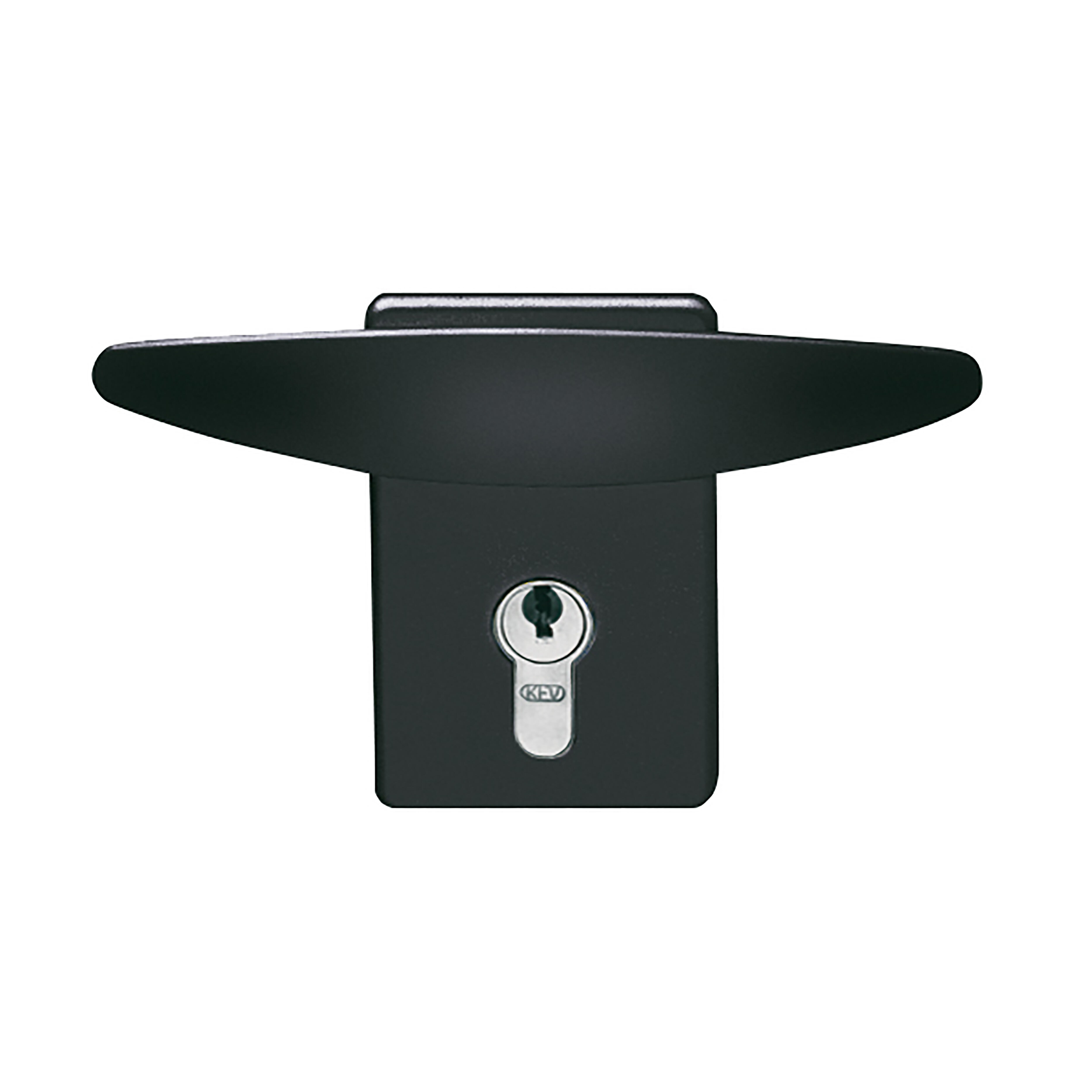 Para puerta de garaje. Cerradura con perfil antitaladro. Manilla de PVC