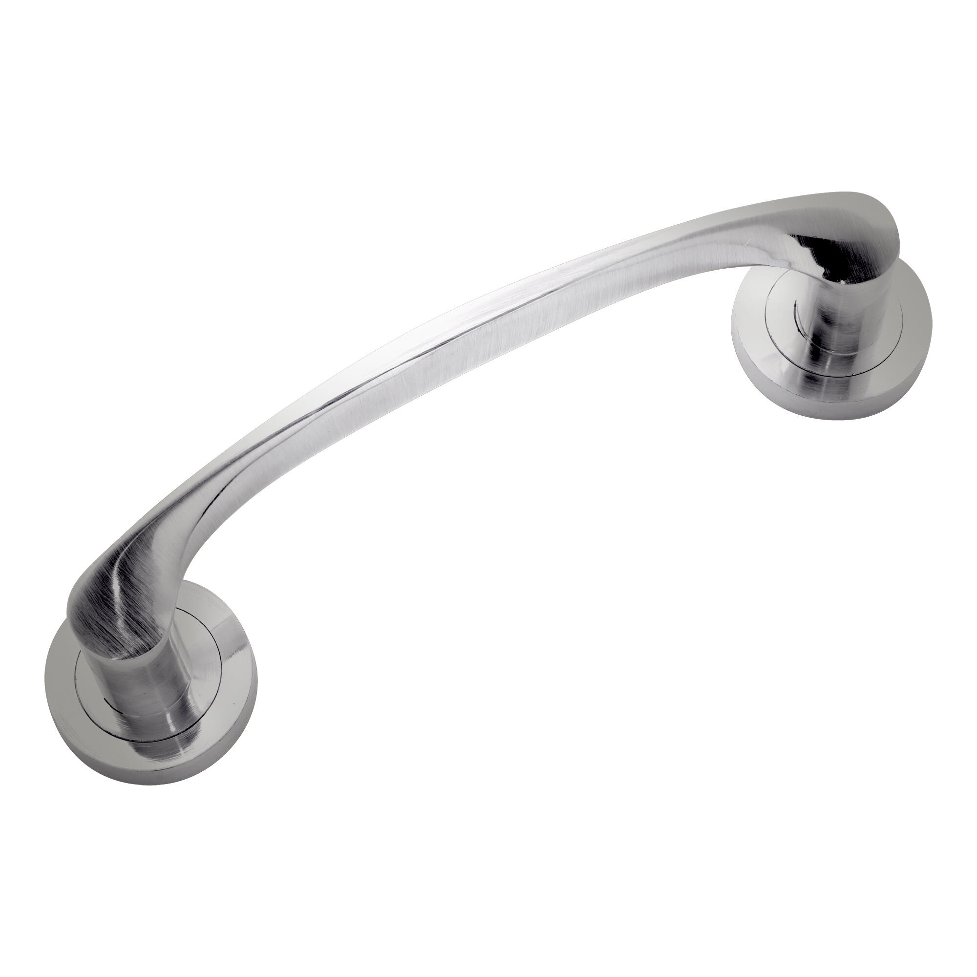 Manillón tirador con roseta, fabricado en aluminio y acabado en niquel satinado.
