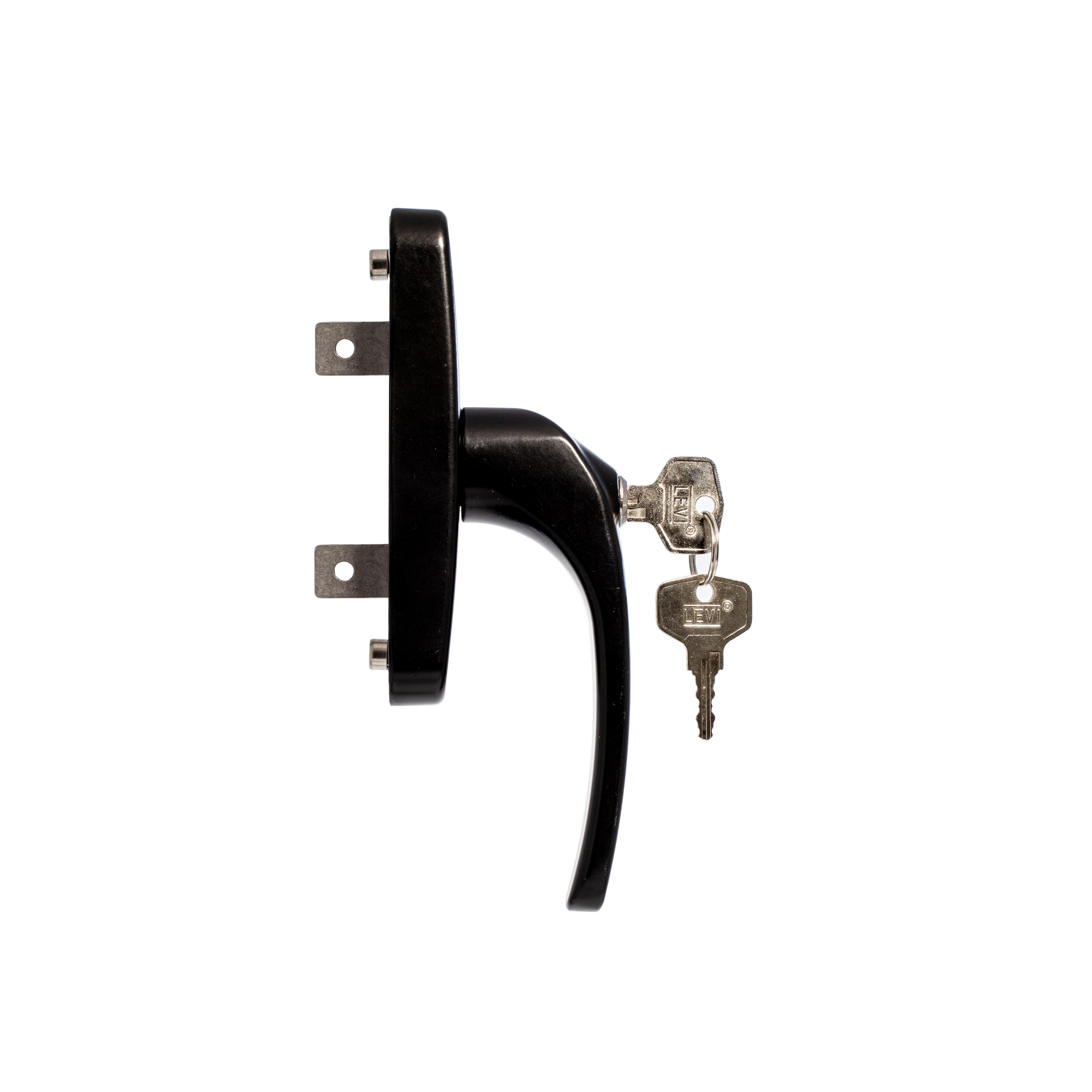 Manivela o manilla cremona con llave para puertas y ventanas abatibles realizada en aluminio extruido, con dos llaves. Ideal para mayor seguridad y control de acceso. Diseño funcional y elegante en acabado negro, compatible con diferentes tipos de perfiles.
