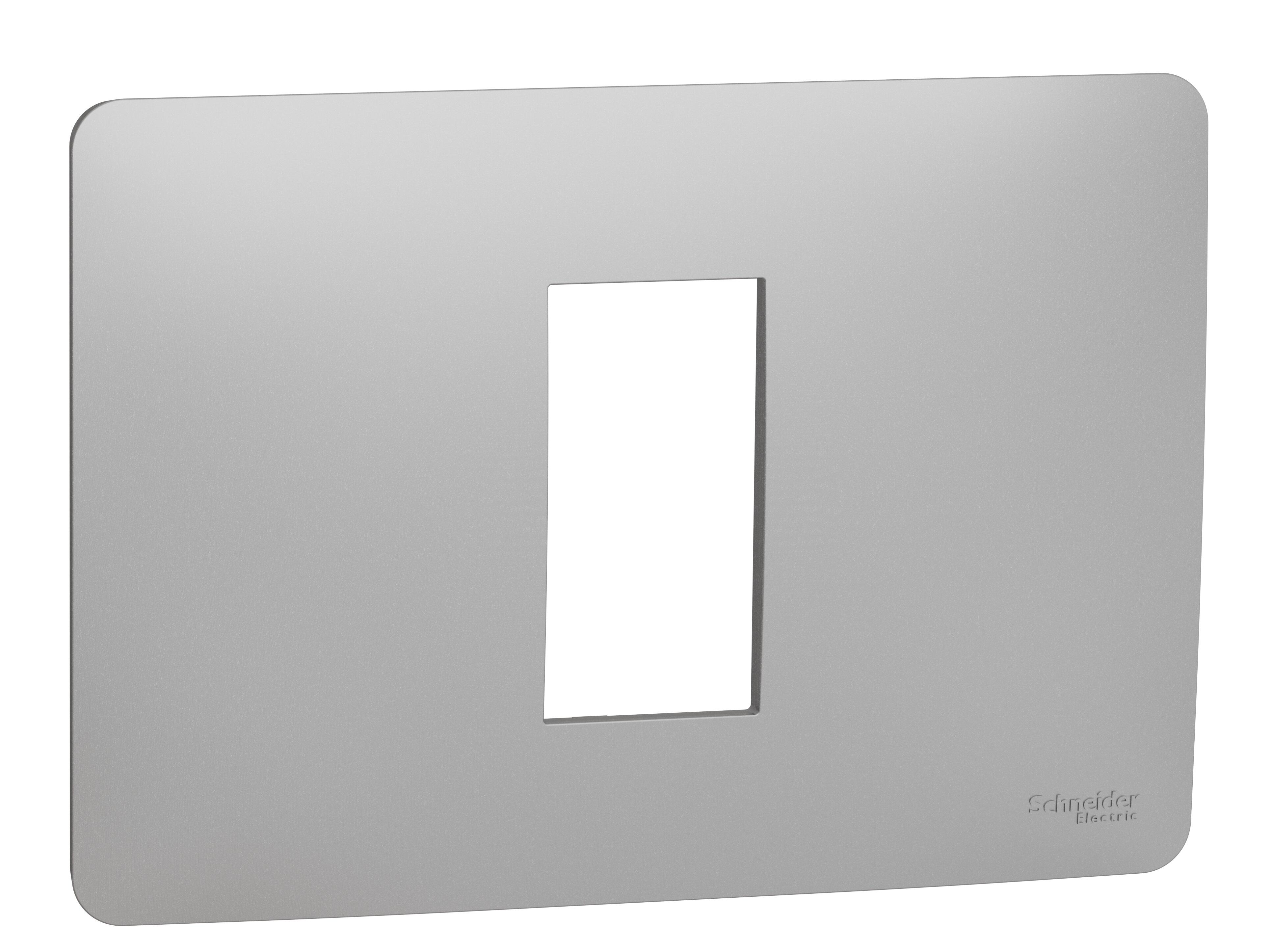 Marco de 1 módulo para instalacion horizontal y en caja rectangular. Acabado aluminio de la serie New Unica de Schneider. La serie New Unica se compone por bastidor + mecanismo + marco. Para completar su instalación debe elegir el bastidor y el mecanismo adecuado, que se venden por separado. La serie New Unica de Schneider dispone de bastidor para caja cuadrada rectangular y, mecanismos y funciones para cualquier necesidad instalativa.