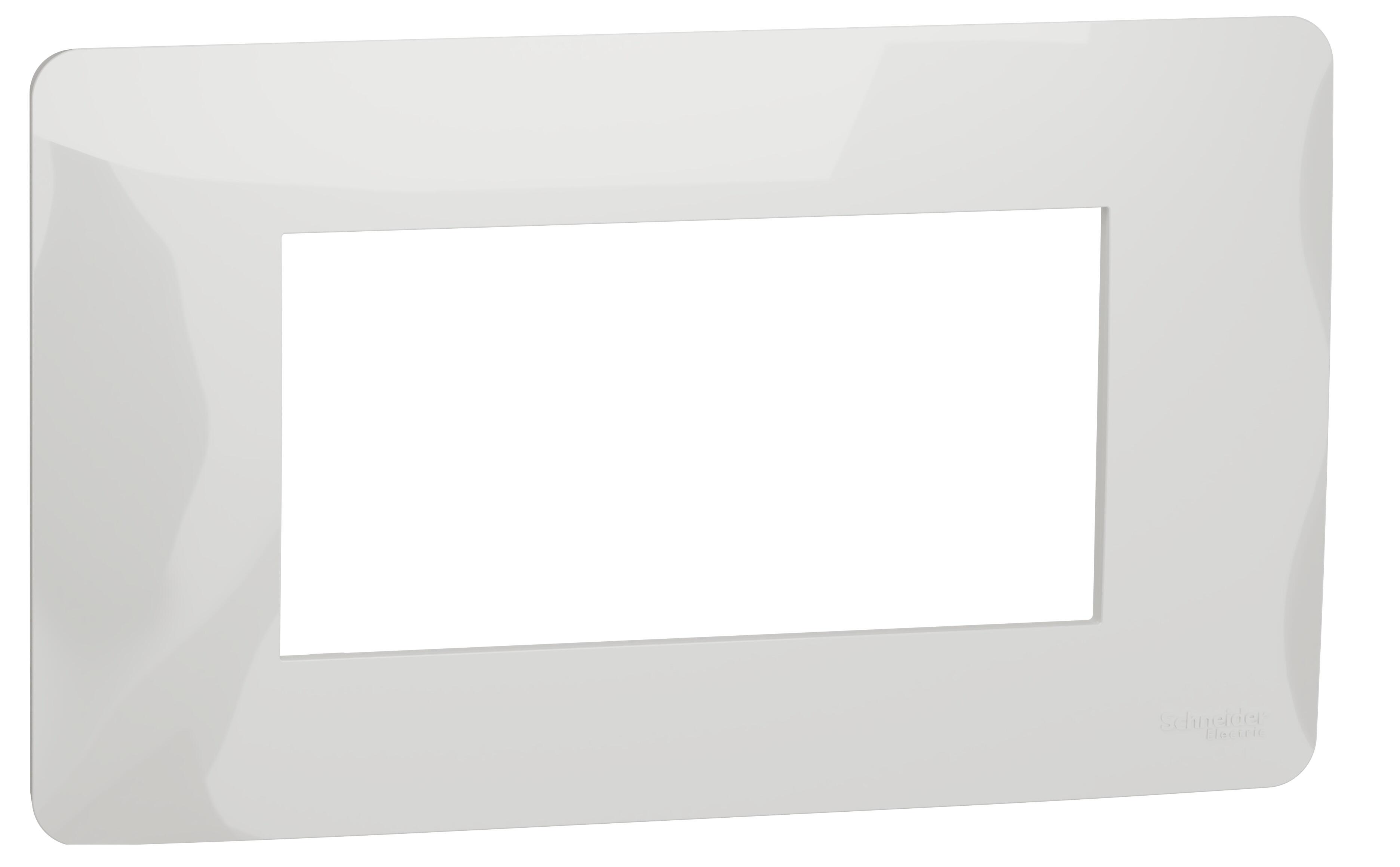 Marco 4 módulos para instalación horizontal y en caja rectangular. Acabado blanco polar de la serie New Unica de Schneider. La serie New Unica se compone por bastidor + mecanismo + marco. Para completar su instalación debe elegir el bastidor y el mecanismo adecuado, que se venden por separado. La serie New Unica de Schneider dispone de bastidor para caja rectangular y, mecanismos y funciones para cualquier necesidad instalativa.