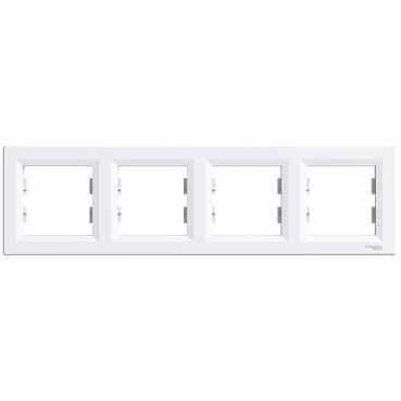 Marco cuadruple para colocación en horizontal. Acabado en blanco de la serie Asfora de Schneider.