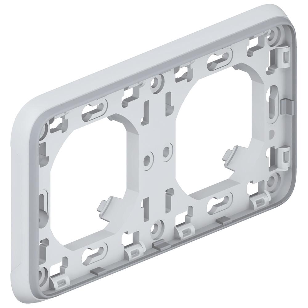 Marco doble de empotrar componible color gris 10Ax - 250va. Mecanismos con IP55, protección frente a líquidos. IK07