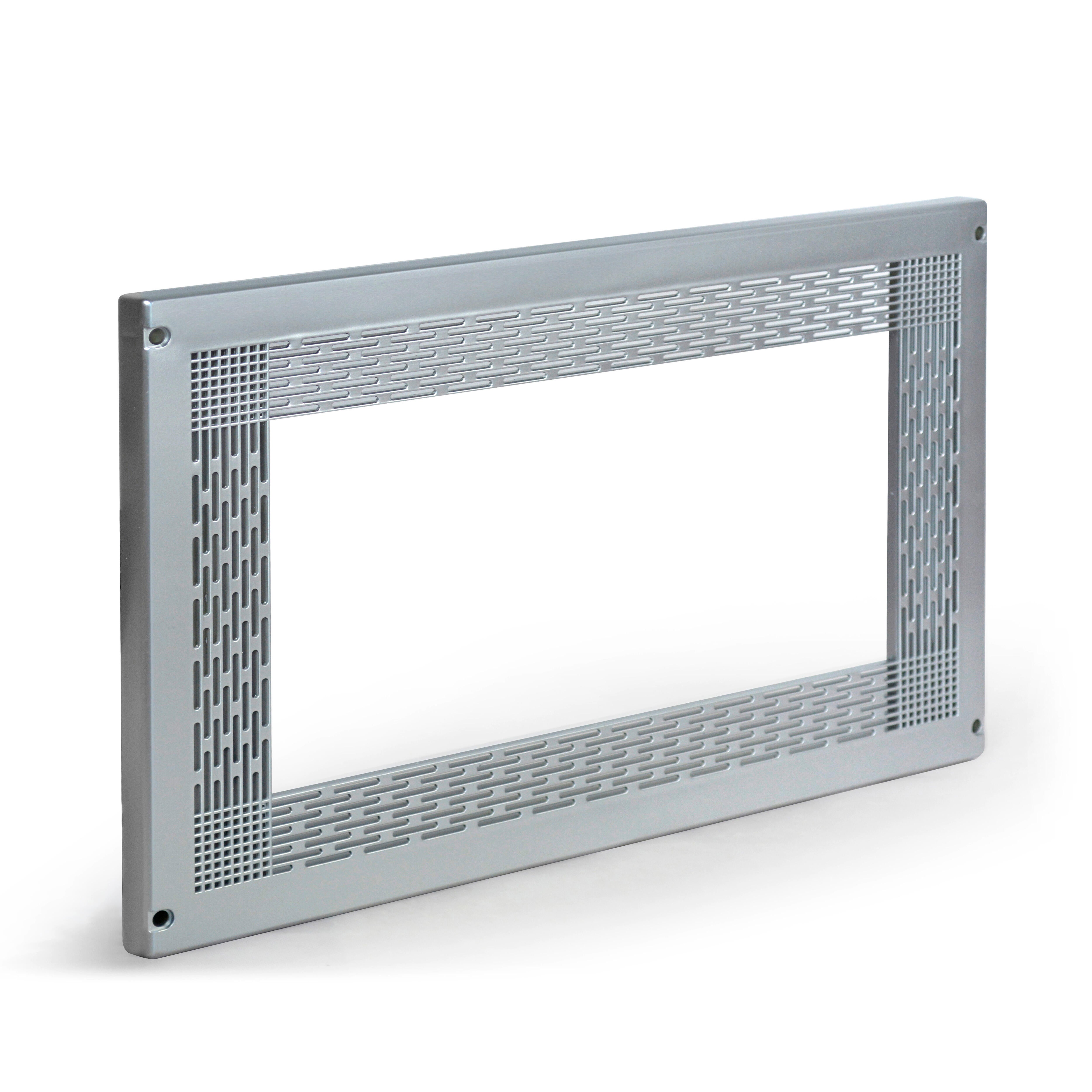 Fabricado en PVC de color gris. Recortable. Indicado para mueble de 60 cm, cubriendo y haciendo más decorativo el hueco que puede dejar el microondas en el mueble.