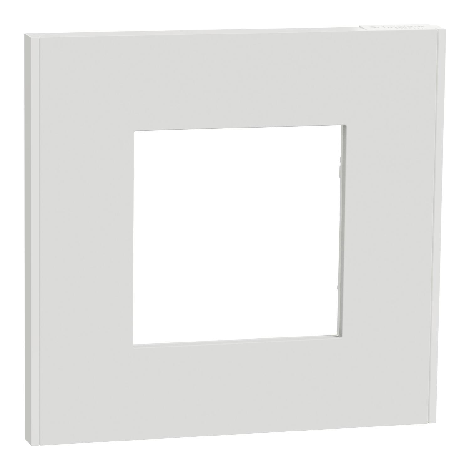 Marco simple de la serie UNICA DECO de Schneider, para instalación horizontal y vertical y en caja cuadrada enlazable universal. Acabado Blanco. La serie Unica se compone por bastidor + mecanismo + marco. Para completar su instalación debe elegir el bastidor y el mecanismo adecuado, que se venden por separado. La serie Unica de Schneider dispone de bastidor para caja cuadrada universal y, mecanismos y funciones para cualquier necesidad instalativa.