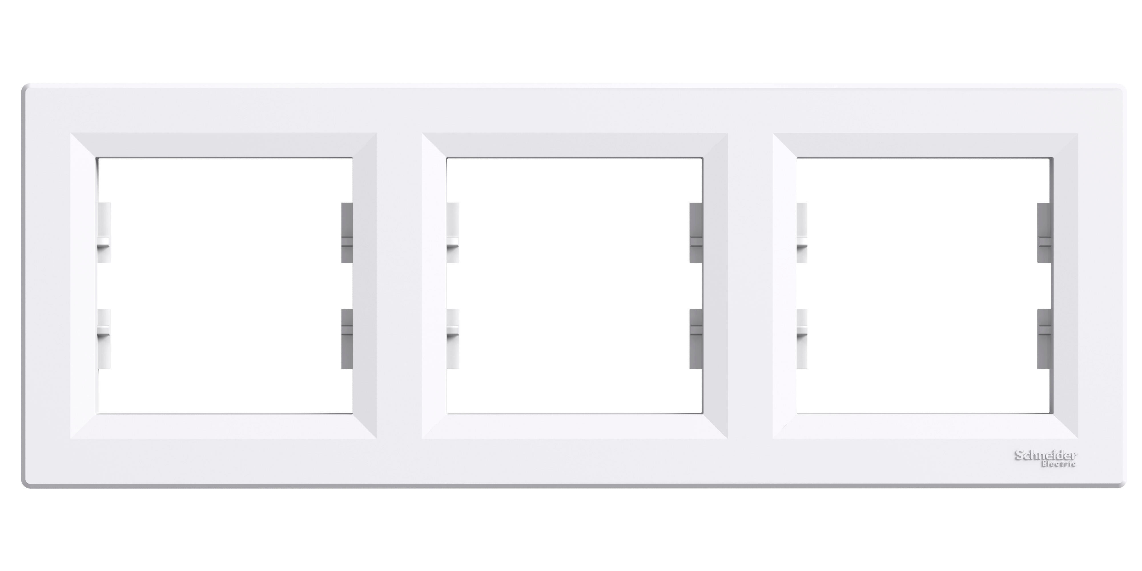 Marco triple para colocación en horizontal. Acabado en blanco de la serie Asfora de Schneider.