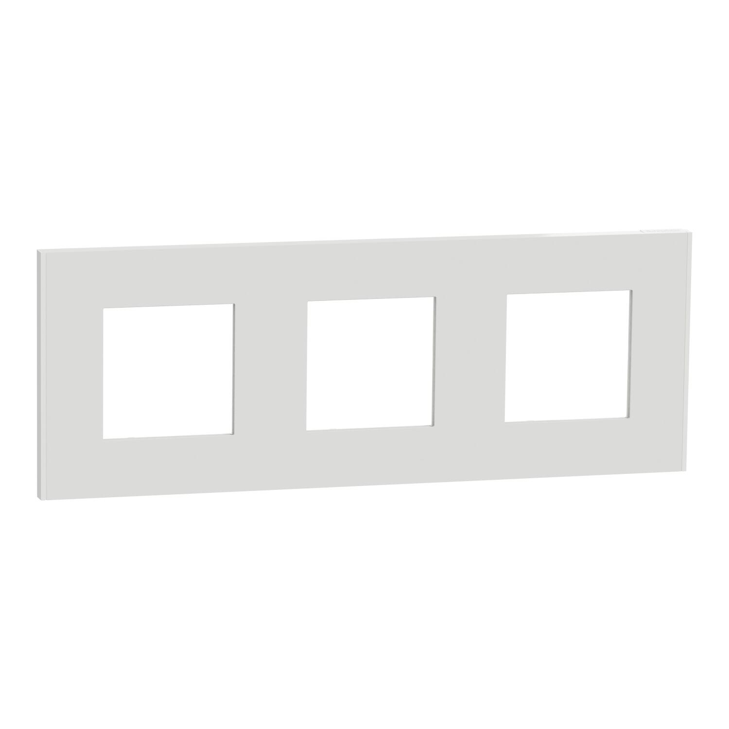 Marco triple de la serie UNICA DECO de Schneider, para instalación horizontal y vertical y en caja cuadrada enlazable universal. Acabado Blanco. La serie Unica se compone por bastidor + mecanismo + marco. Para completar su instalación debe elegir el bastidor y el mecanismo adecuado, que se venden por separado. La serie Unica de Schneider dispone de bastidor para caja cuadrada universal y, mecanismos y funciones para cualquier necesidad instalativa.
