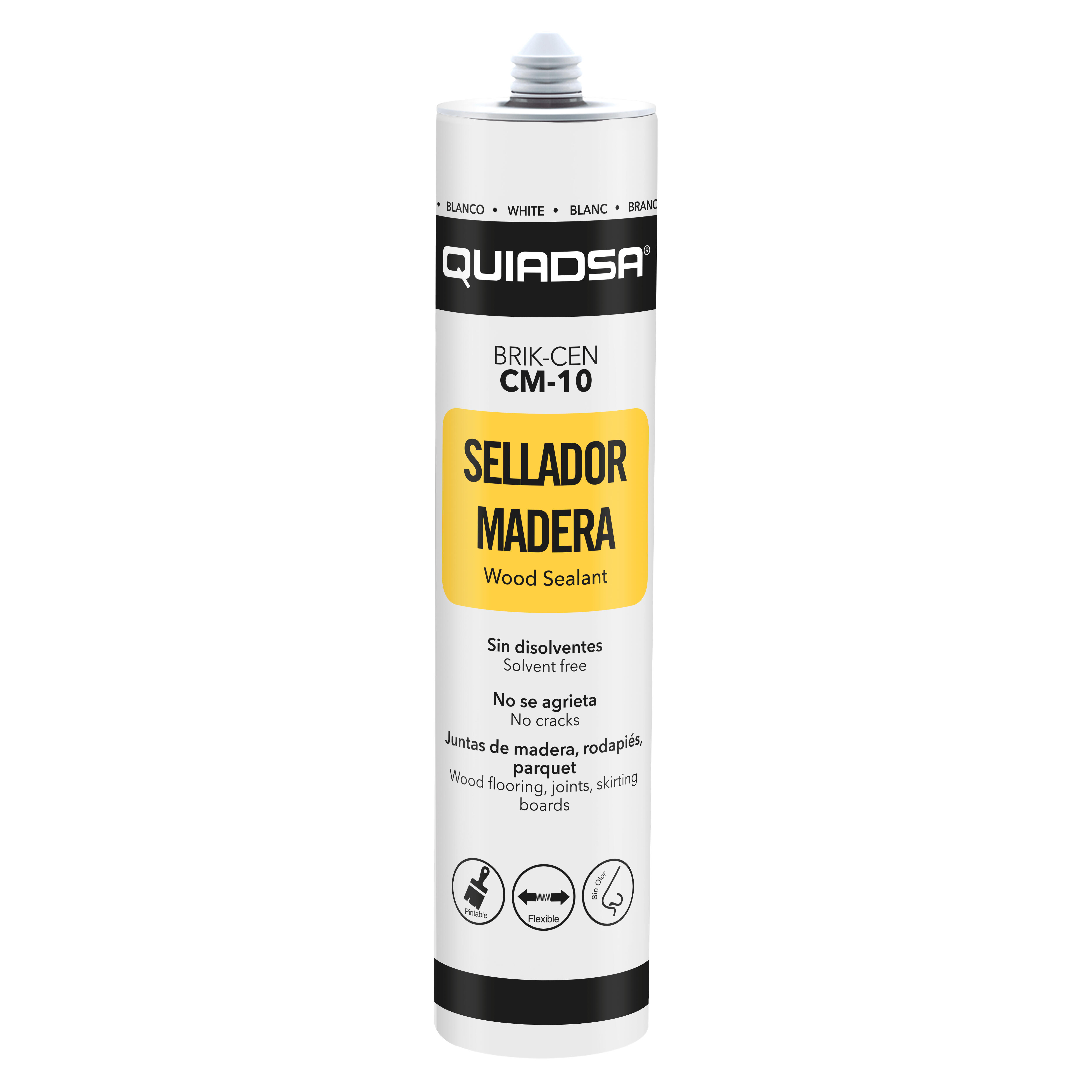 Masilla acrílica para madera 300ml BRIK CEN CM-10. Color blanco. Para el sellado de juntas, rodapiés con suelos de madera, ventanas, puertas, etc. Sellado en carpintería de madera, armarios empotrados.