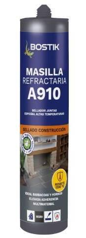 Masilla indicada para el sellado y estanqueidad de juntas entre ladrillos refractarios o metales en la instalación y montaje de barbacoas, chimeneas, contenedores, etc. Buena adherencia sobre ladrillos, metales, hormigón, cemento, vidrio… Resistencia de hasta 1200ºC.
