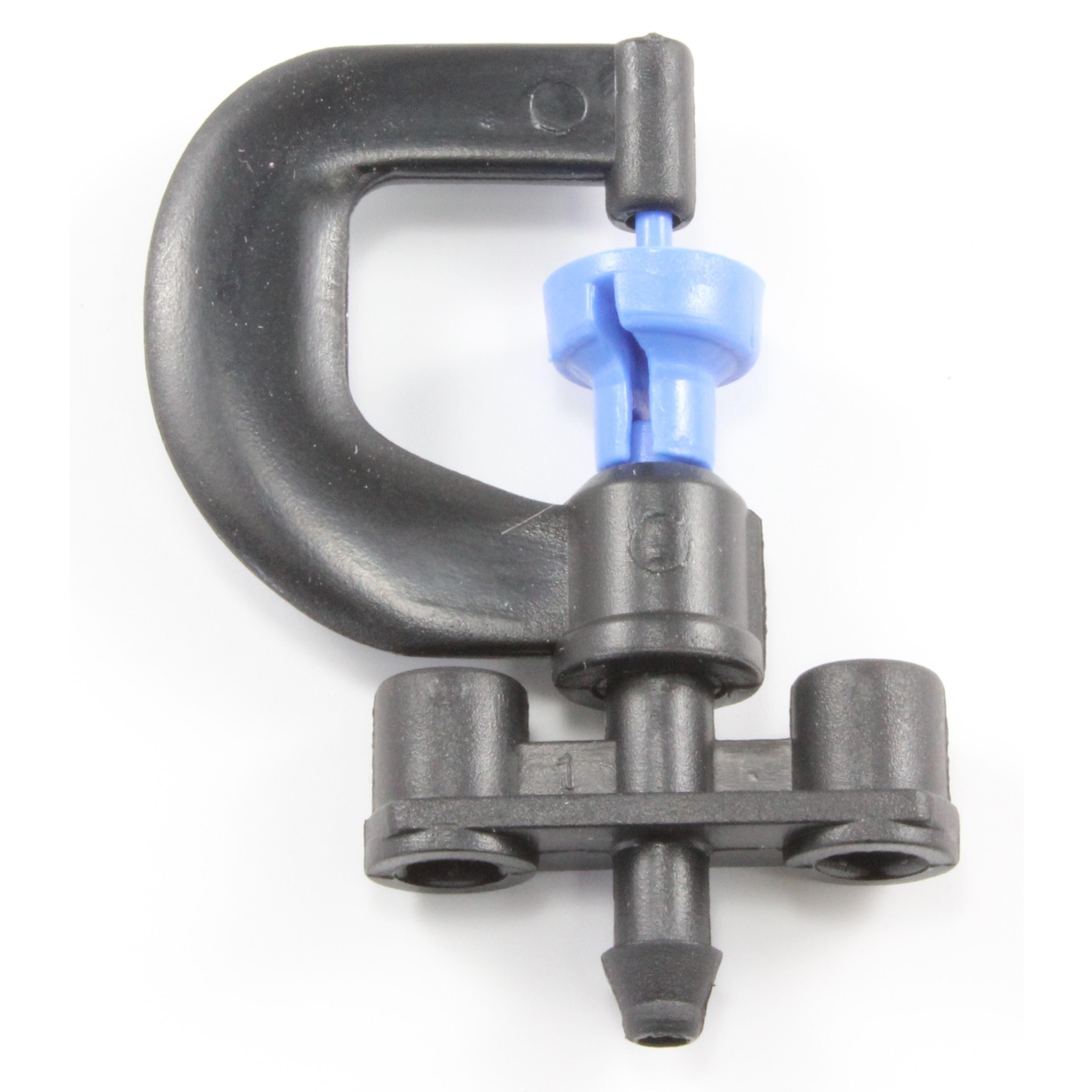 Destinado a riego de cultivos agrícolas (frutales, hortalizas), invernaderos, jardinería, etc. •Su baja sensibilidad a la obturación y alta resistencia a las condiciones químicas, mecánicas y ambientales, completan las características de calidad de riego, duración y fiabilidad. •Mayor uniformidad de riego. Características •Micro aspersor con ángulo de riego 360º rotatorio. •Presión de trabajo: 1,5 a 2,0 bar. •Caudal: 61 a 70 l/h. •Radio de riego: 2,2 a 2,5 metros.