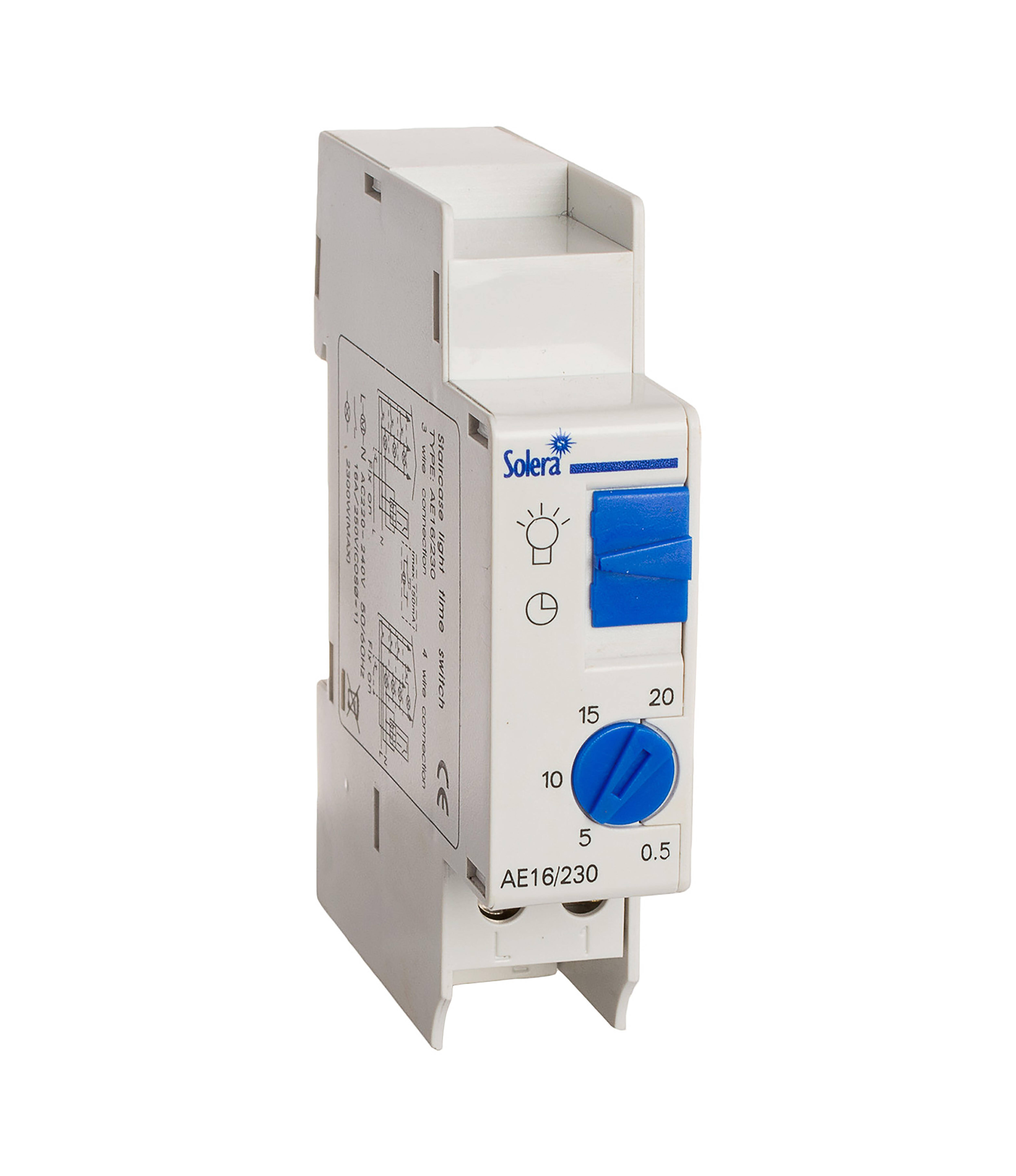 Minutero de escalera automático. Apto para led. 230vac~. Un módulo. Función: on- timer. Temporización: 30 s a 20 min. Contacto: 1no (16A)