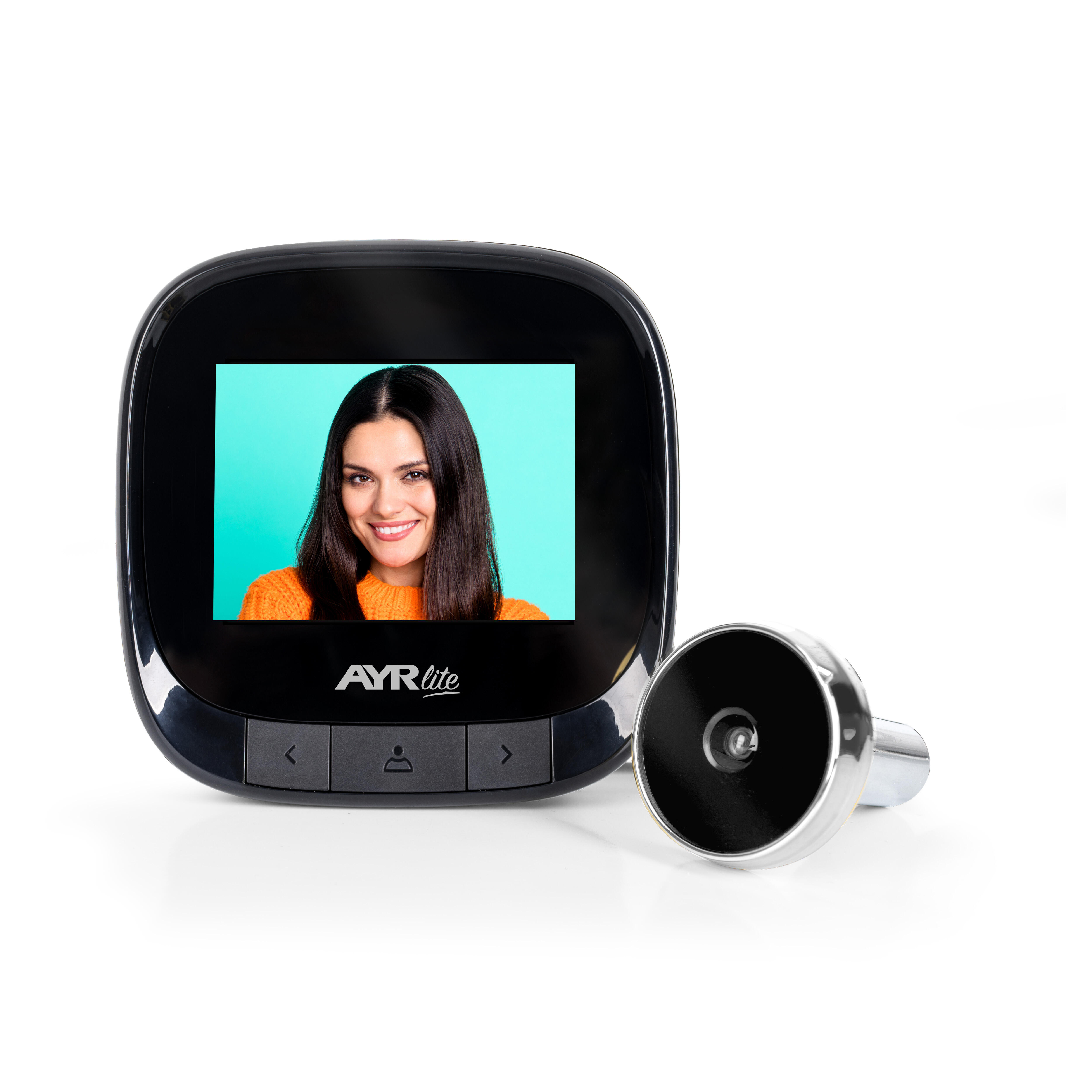 Mirilla digital con pantalla de 2.4”. Imagen clara aun en situaciones de escasa luz. Angulo de visión de 90º. Incorpora batería recargable. Almacena fotografías. Fácil de instalar. Acabado negro y cromo