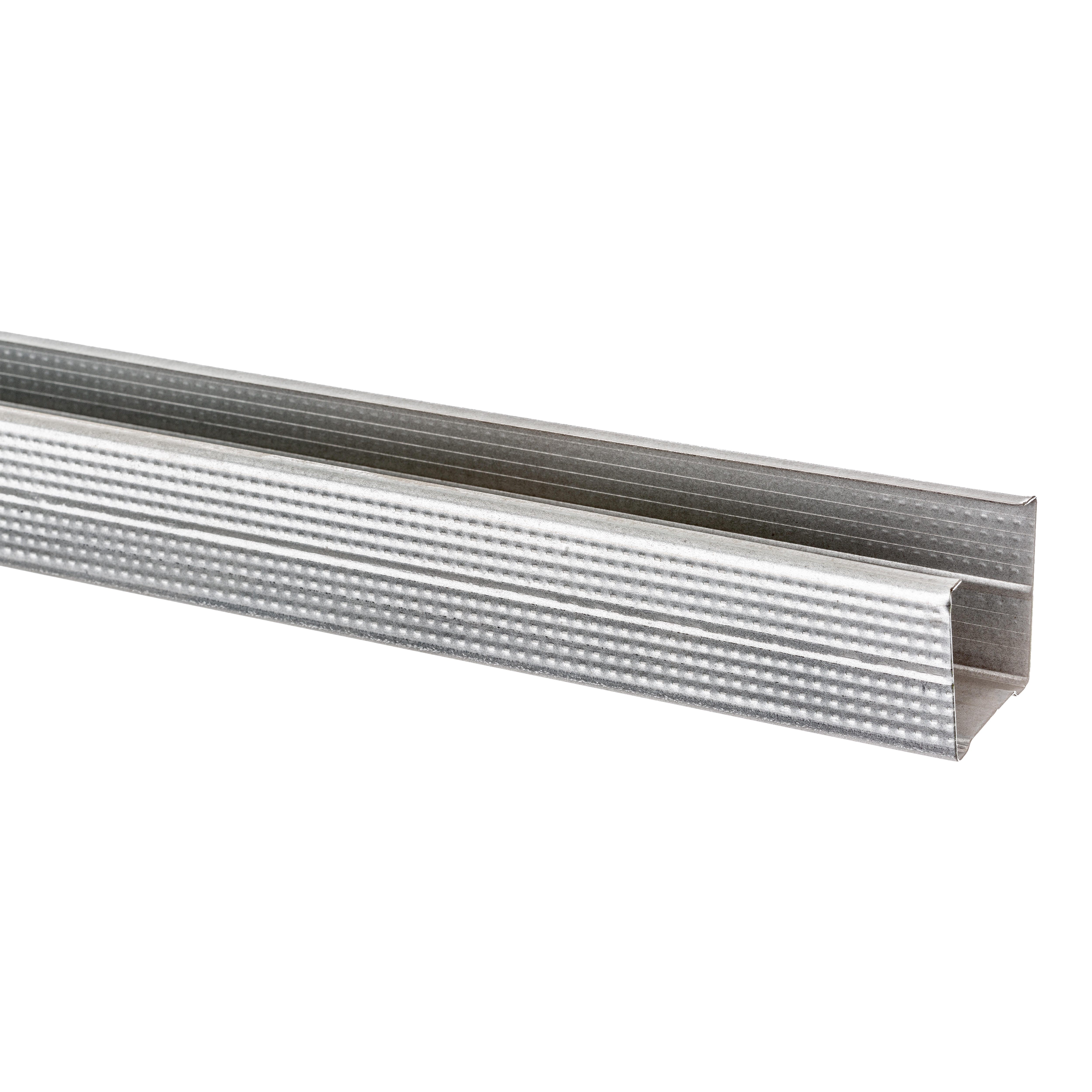 Montante metálico. Elemento vertical enforma de "C" que encaja dentro de los raíles en la estructura portante de tabiques o trasdosados autoportantes de placa de yeso laminado. Su forma de "U" invertida en orificios para el paso de las instalaciones por el interior del parámetro evitando así cortes en el paso de instalaciones. Medida 3 m y 36 mm.