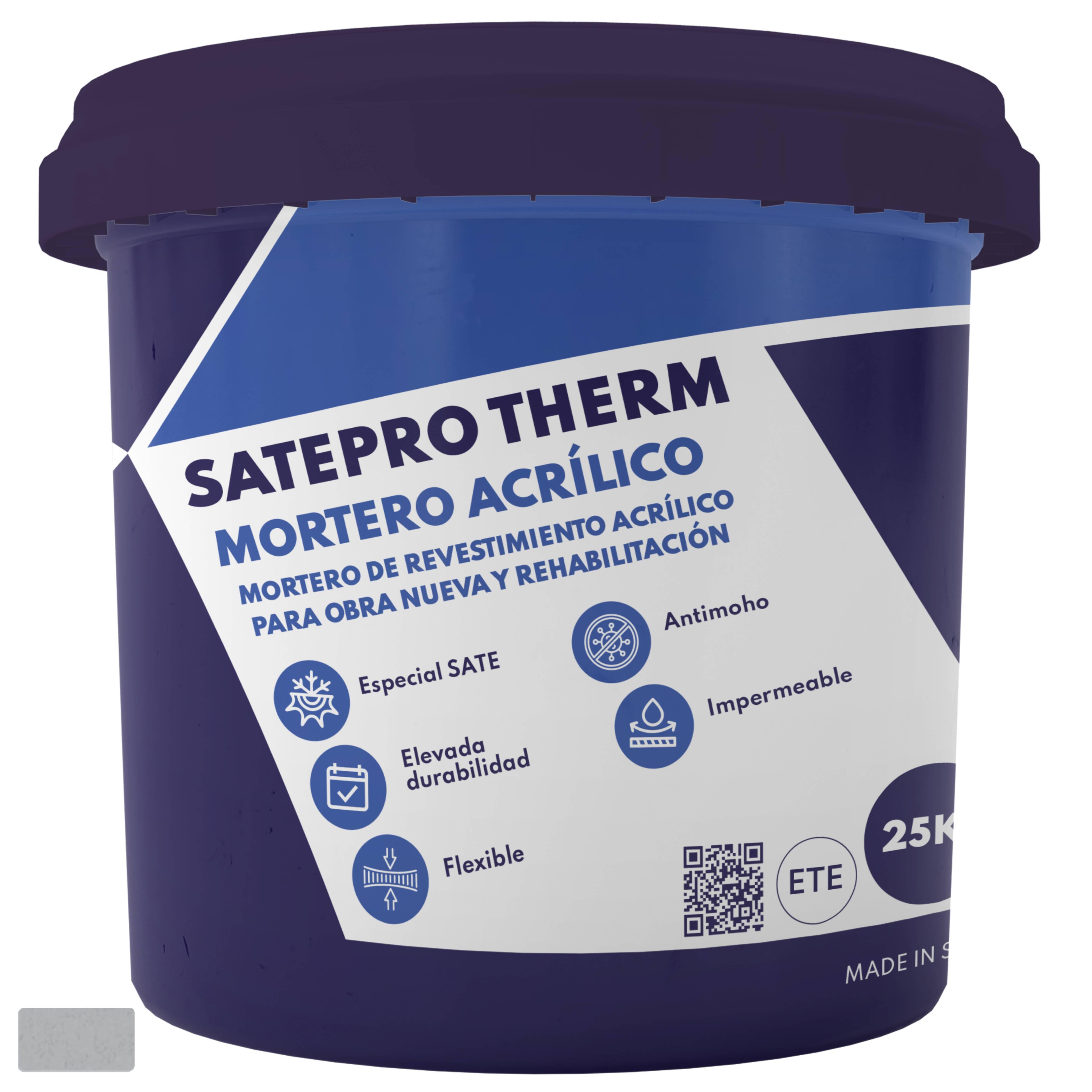 SATEPRO THERM MORTERO ACRÍLICO es un revestimiento impermeabilizante compuesto por una dispersión copolímera, pigmentos cubrientes y con una alta resistencia. Ha sido diseñado específicamente para ofrecer protección y mejorar la estética de fachadas e interiores, sobre los materiales más comunes en la construcción. Se recomienda no aplicarlo en condiciones de temperatura inferiores a 5ºC ni superiores a 30ºC, ni bajo la exposición directa al sol, lluvia o en presencia de heladas. Asimismo, no debe usarse sobre superficies horizontales o con una inclinación menor a 45 grados. La limpieza de las herramientas puede realizarse fácilmente con abundante agua.
