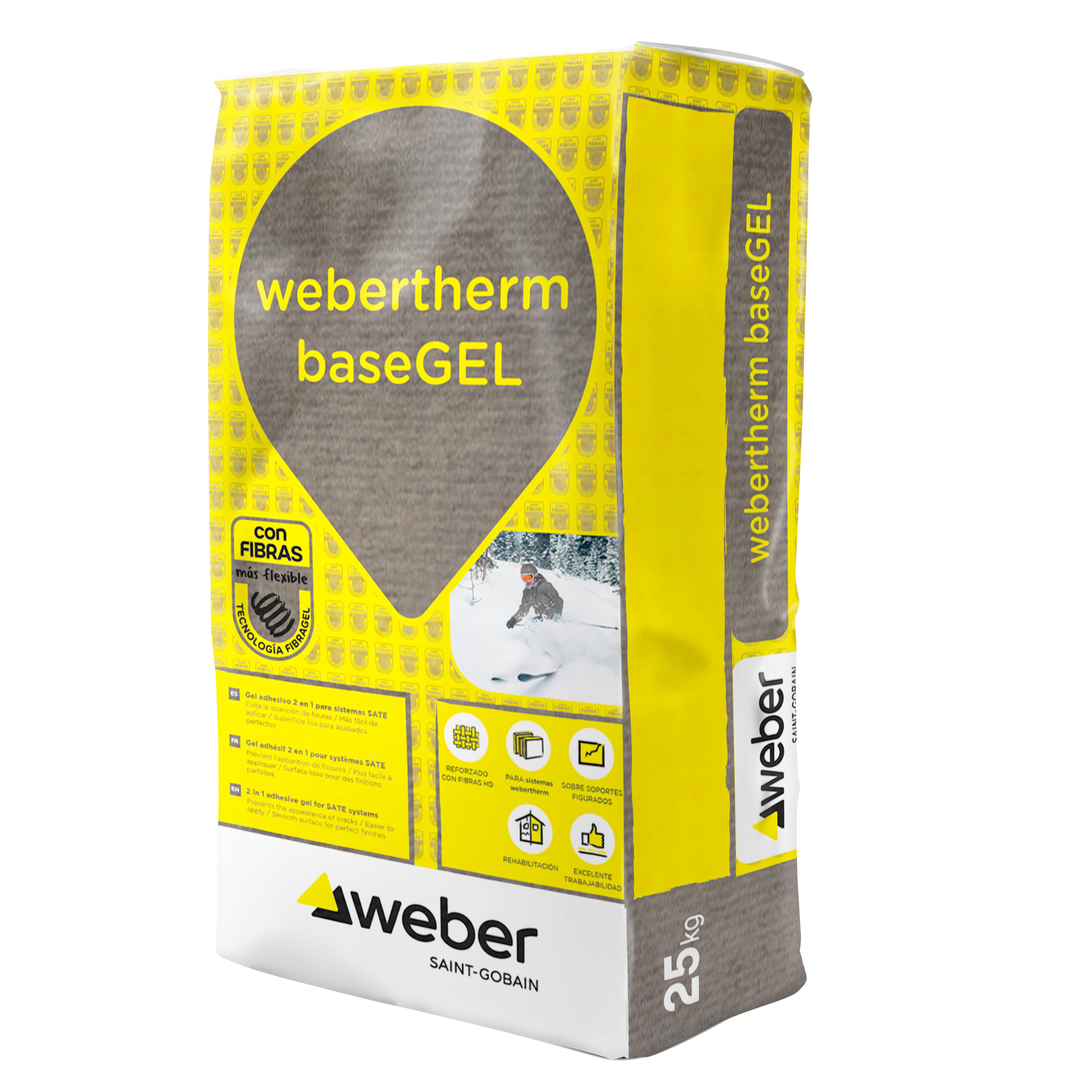 Gel multiusos reforzado con fibras que sirve en los sistemas SATE como adhesivo para fijar los paneles aislantes y como regularizarizador de la superficie antes de recibir revestimientos de acabado en capa fina, en los sistemas de aislamiento térmico por el exterior. En exteriores, no aplicar sobre superficies horizontales o inclinadas expuestas al agua de lluvia.