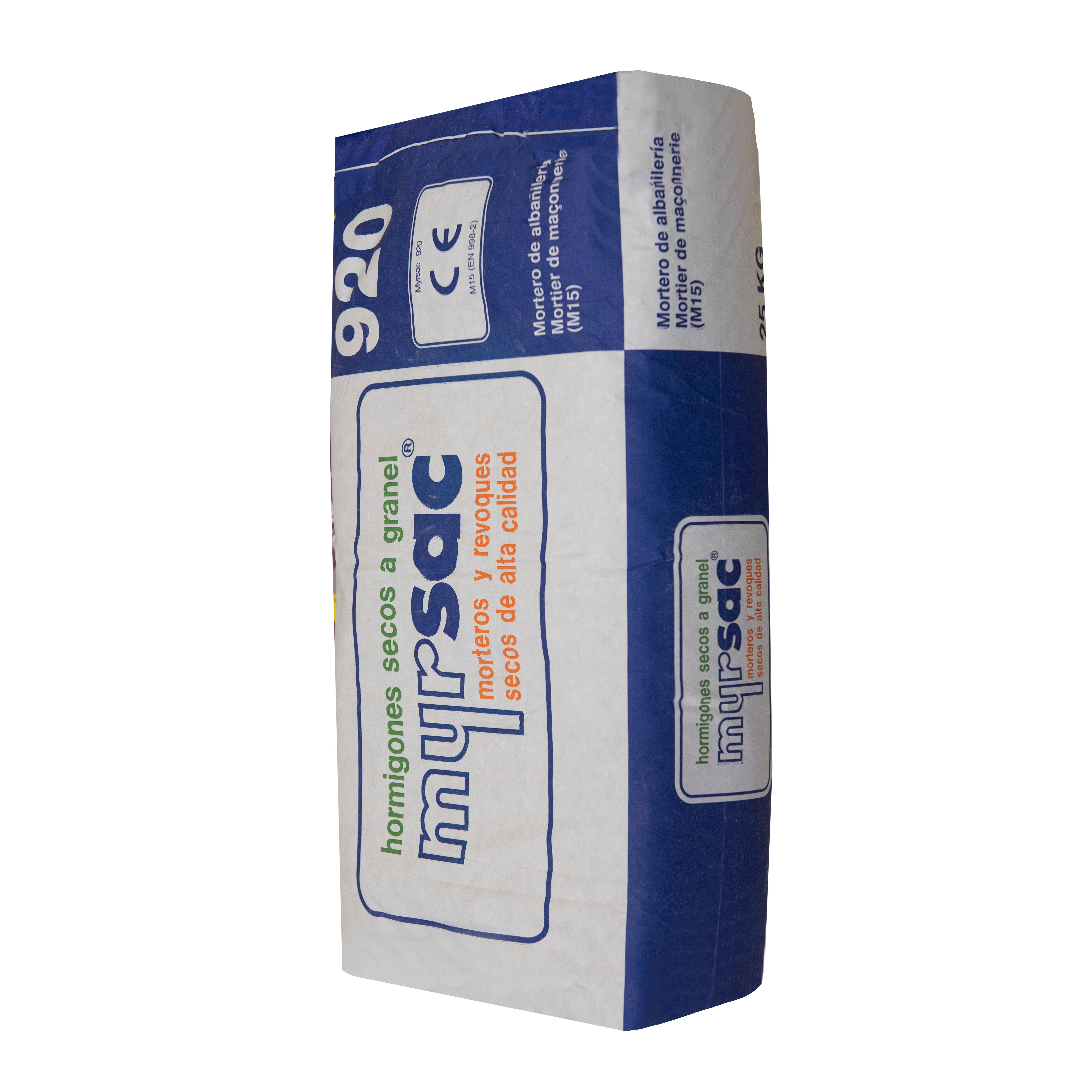 Mortero seco M15 gris. 15 N/mm2. Usos: Muros de ladrillo, bloques de hormigón, colocación de tejas, solados, pavimentos, nivelación y rellenos. Revocos de capa gruesa.