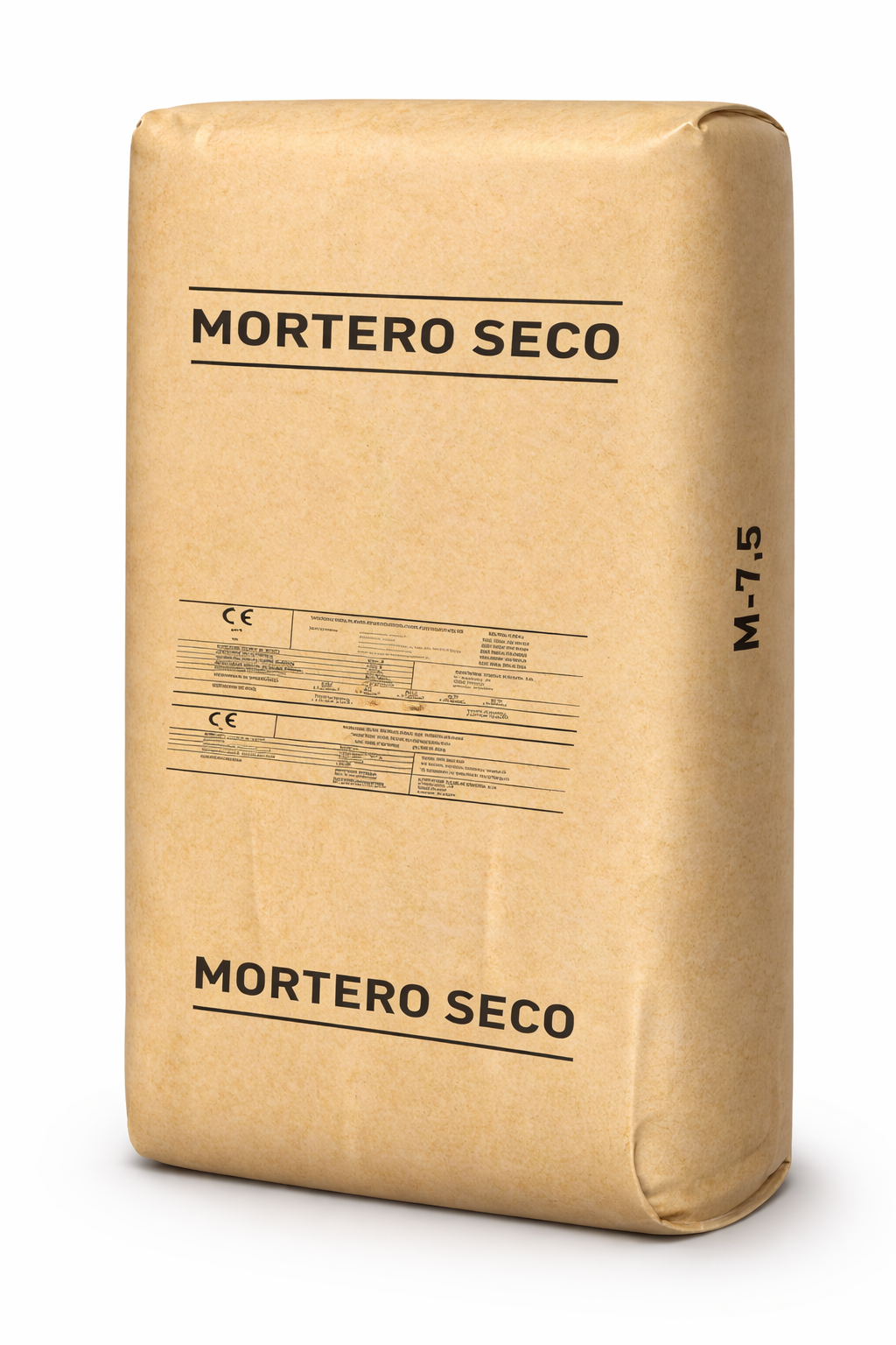 Mortero seco gris M7.5. 7.5 N/mm2. Usos: Muros de ladrillo, bloques de hormigón, colocación de tejas, solados, pavimentos, nivelación y rellenos.