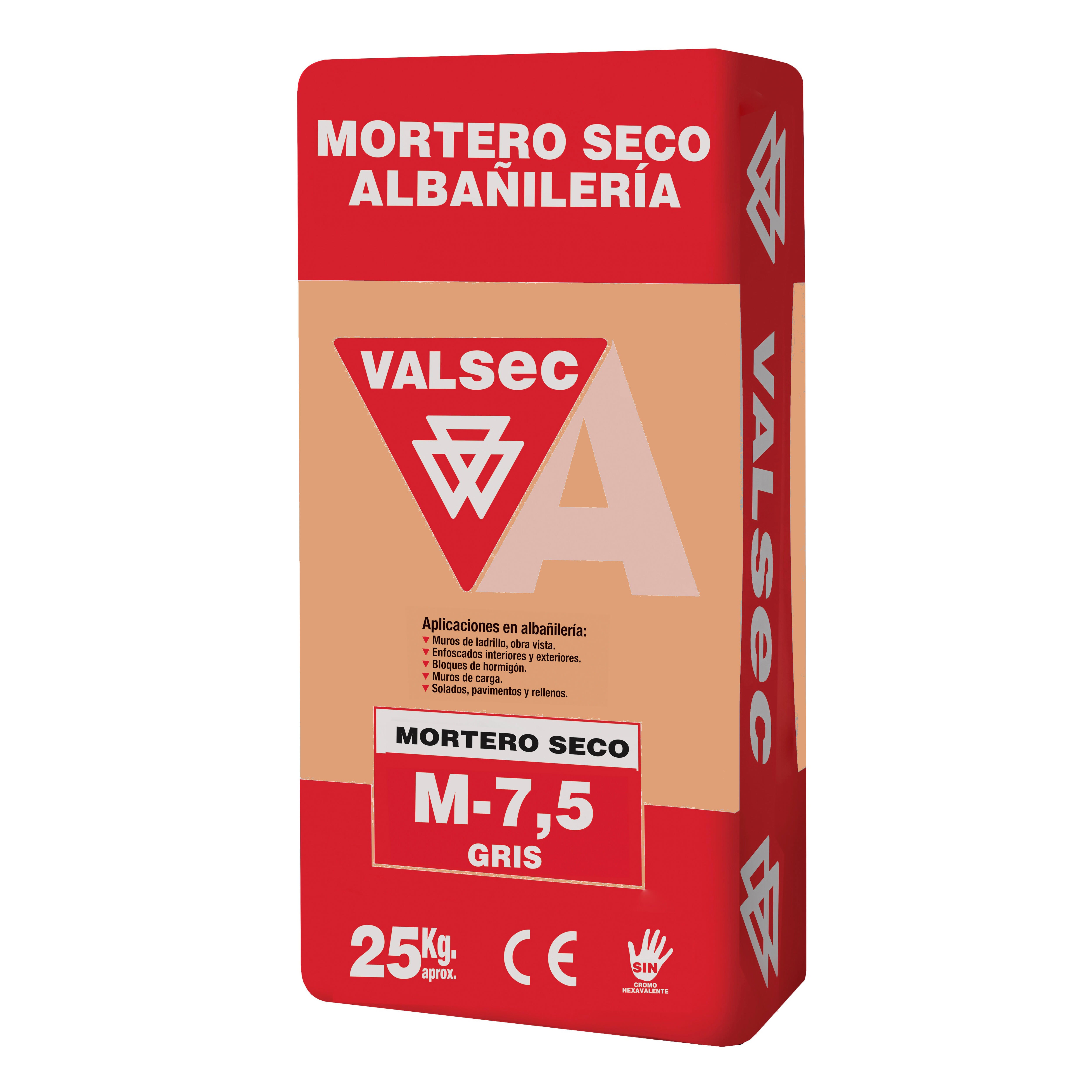 Mortero seco gris M7.5 Hidrofugo. 7,5 N/mm2. Saco de 25kg.Usos: enfoscados, muros de ladrillo, bloques de hormigón, colocación de tejas, solados, pavimentos, nivelación y rellenos.