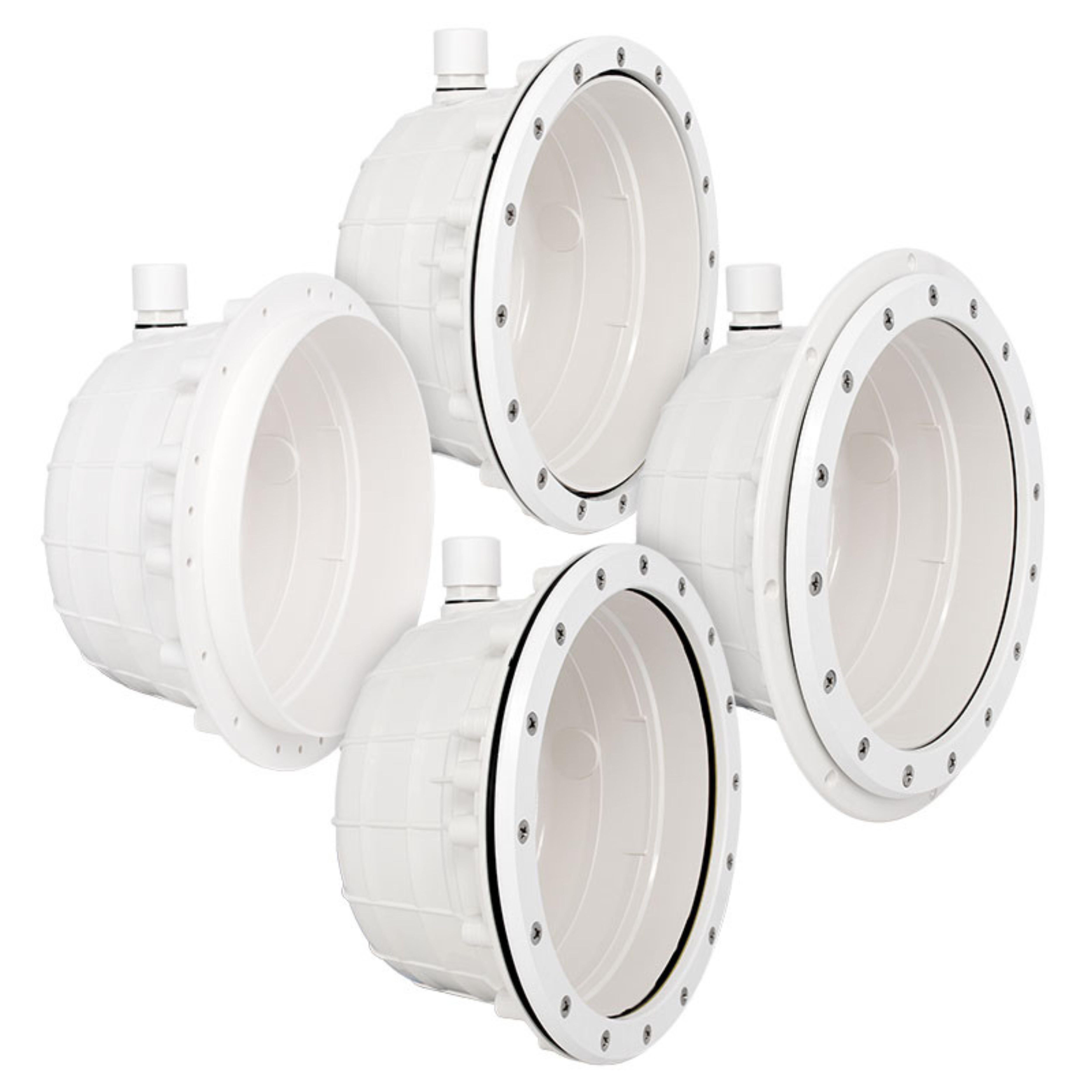 Elemento técnico diseñado específicamente para el alojamiento de proyectores subacuáticos estándar en vasos de piscina de hormigón. Este nicho presenta un diámetro exterior de 276 mm y una profundidad total de 139 mm. Incorpora prensaestopas con rosca M-25 para garantizar una conexión eléctrica estanca y segura, facilitando la instalación y el mantenimiento de los sistemas de iluminación sumergida.