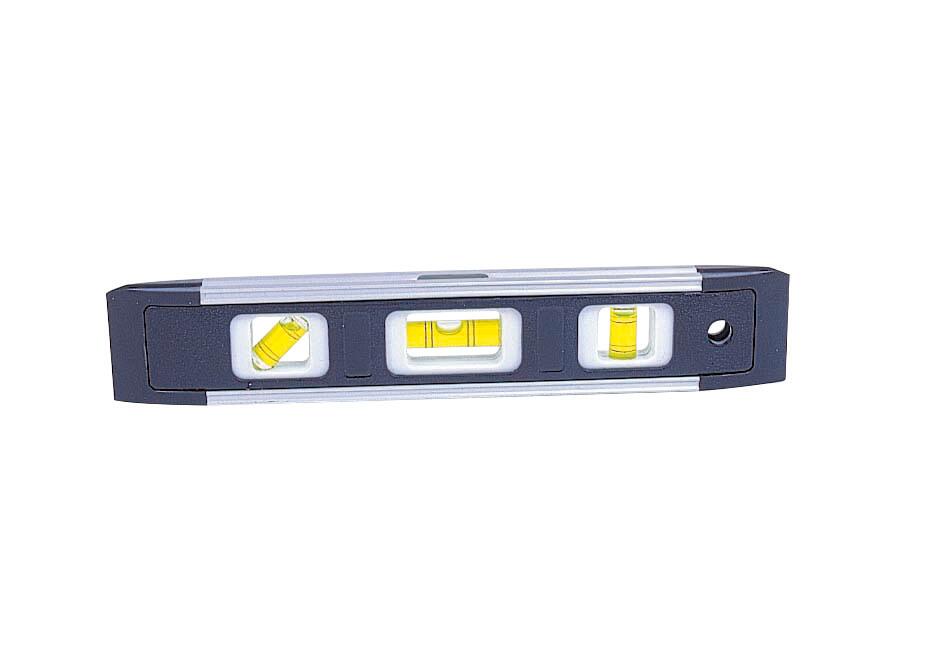 Nivel torpedo con base magnética. Aluminio + ABS. 3 burbujas. 200mm.