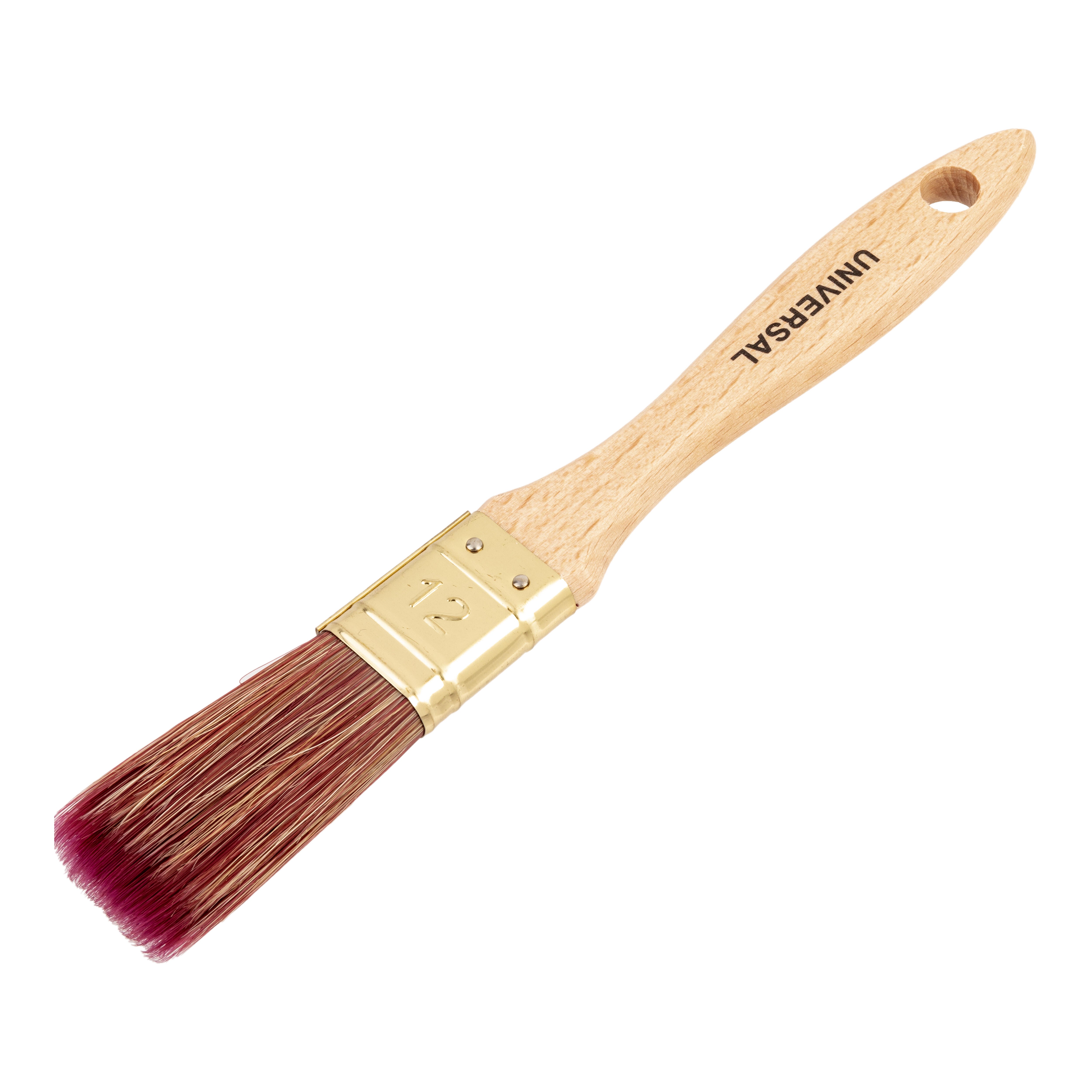 •Aplicaciones: todo tipo de pinturas. Especial pinturas al agua •Mango: madera haya encerada •Fibra: 50% Cerda 90% tops mezcla 30 % PBT + 20 % PET •Salida fibra 64 mm •Virola: latonada •Medidas: (alto x ancho x fondo) 220 mm x 25 mm x 13 mm •Peso: 31 g.