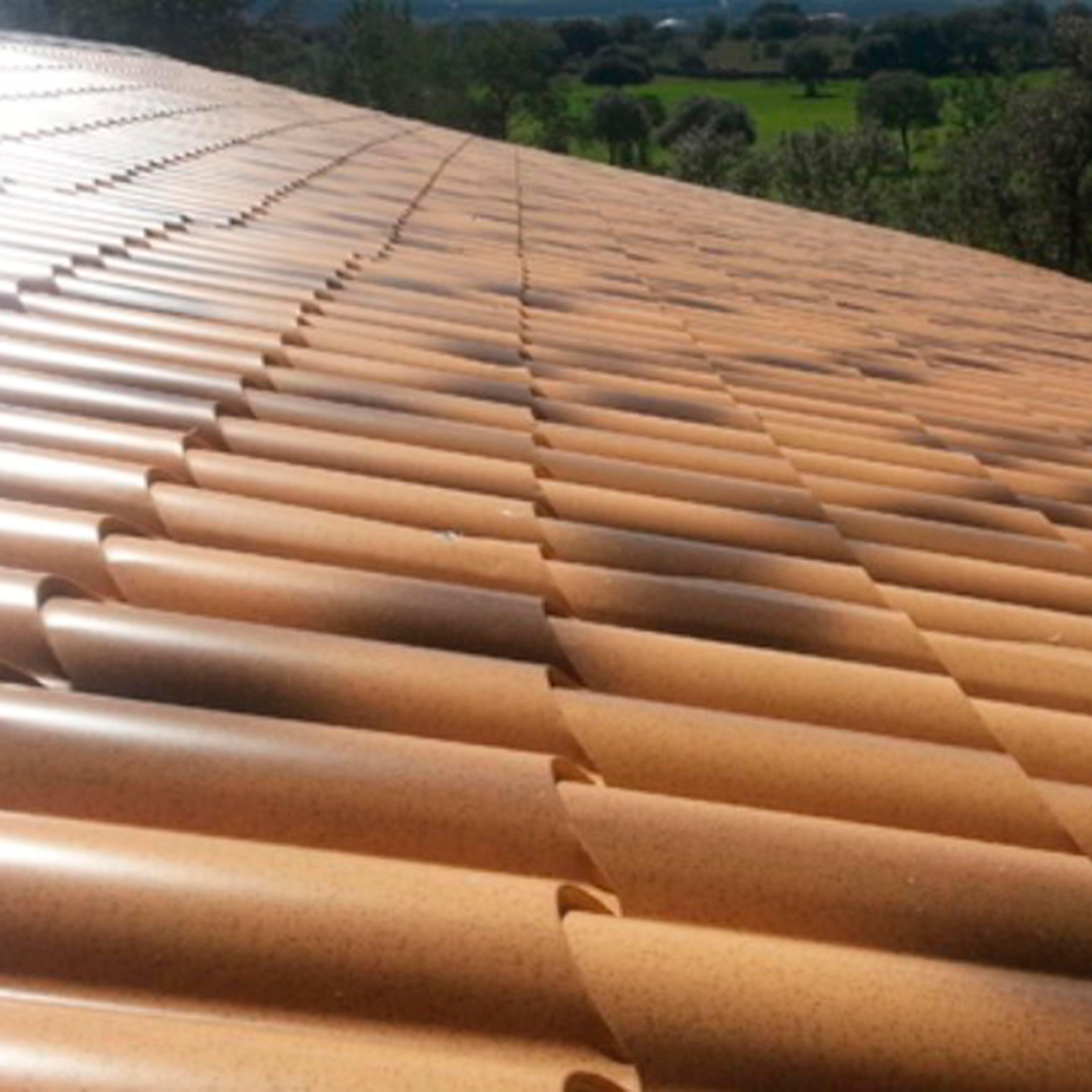 Panel sándwich para cubierta de edificios residenciales o para edificios industriales. Ideal para la cubierta con aislamiento en poliuretano de nuevas construcciones, así como para rehabilitación. Acabado de teja que proporciona un alto valor estético que se adapta perfectamente al sector residencial y rural.