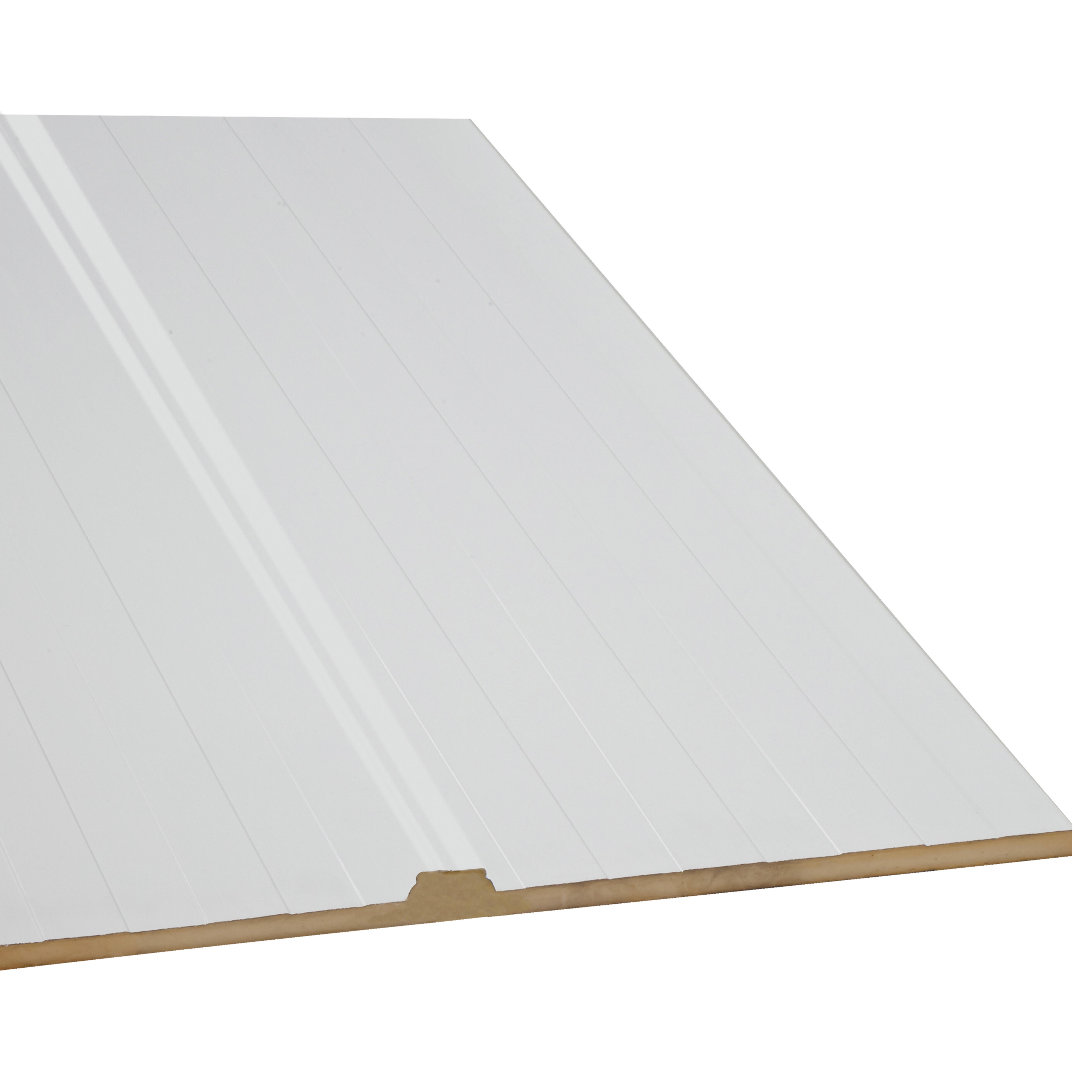 Ver productos de la misma categoríaPanel sándwich con doble revestimiento metálico para cubiertas grecadas con pendientes no inferior al 7%, ligero y de instalación sencilla, estudiado para edificaciones industriales y comerciales. Perfil grecado con 3 grecas. Color blanco en parte superior e inferior. Aislado en pouretano, mejora el confort térmico y acústico. La fi jación es a vista con grapas y guarniciones.