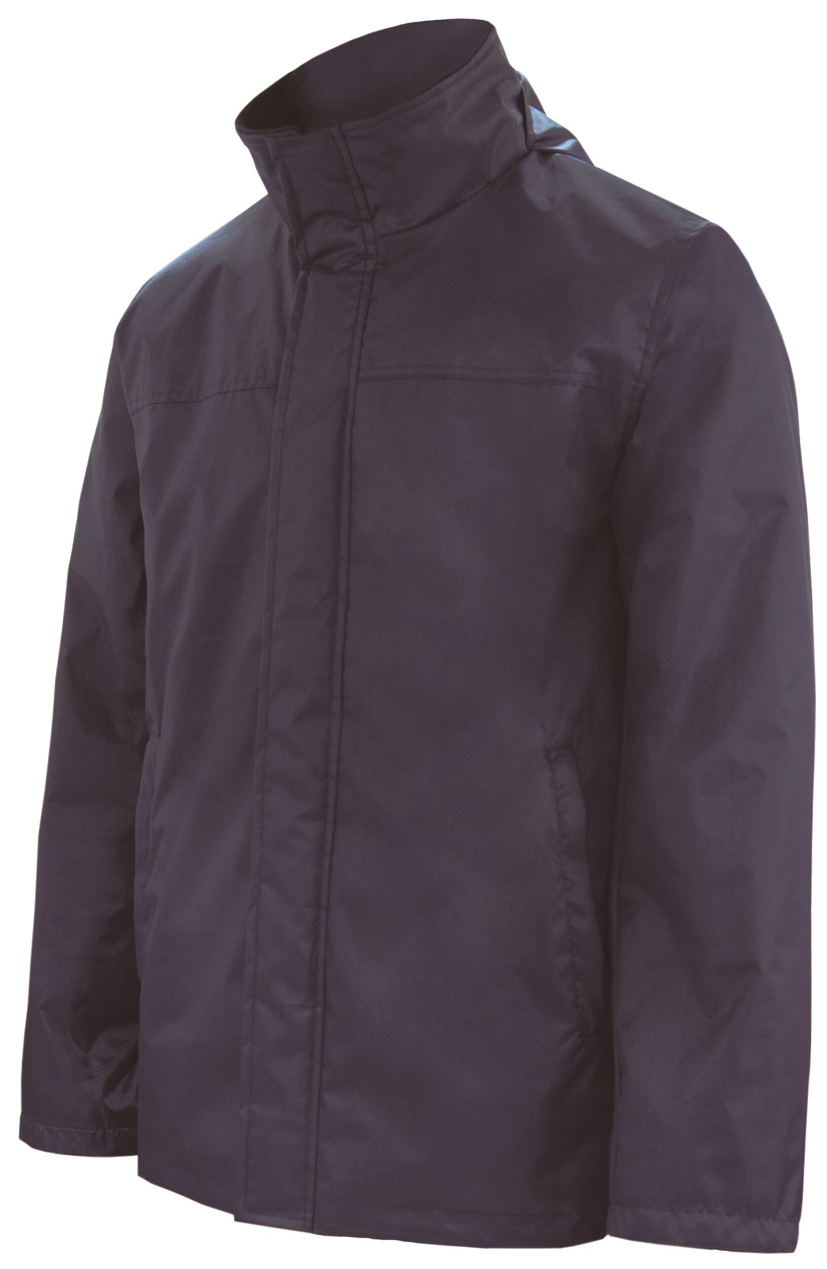 Cazadora 100% Poliester, 190 gr/m2. Recubrimiento de PVC. Acolchada e impermeable con capucha. Cierre central de cremallera. Azul. Talla S.