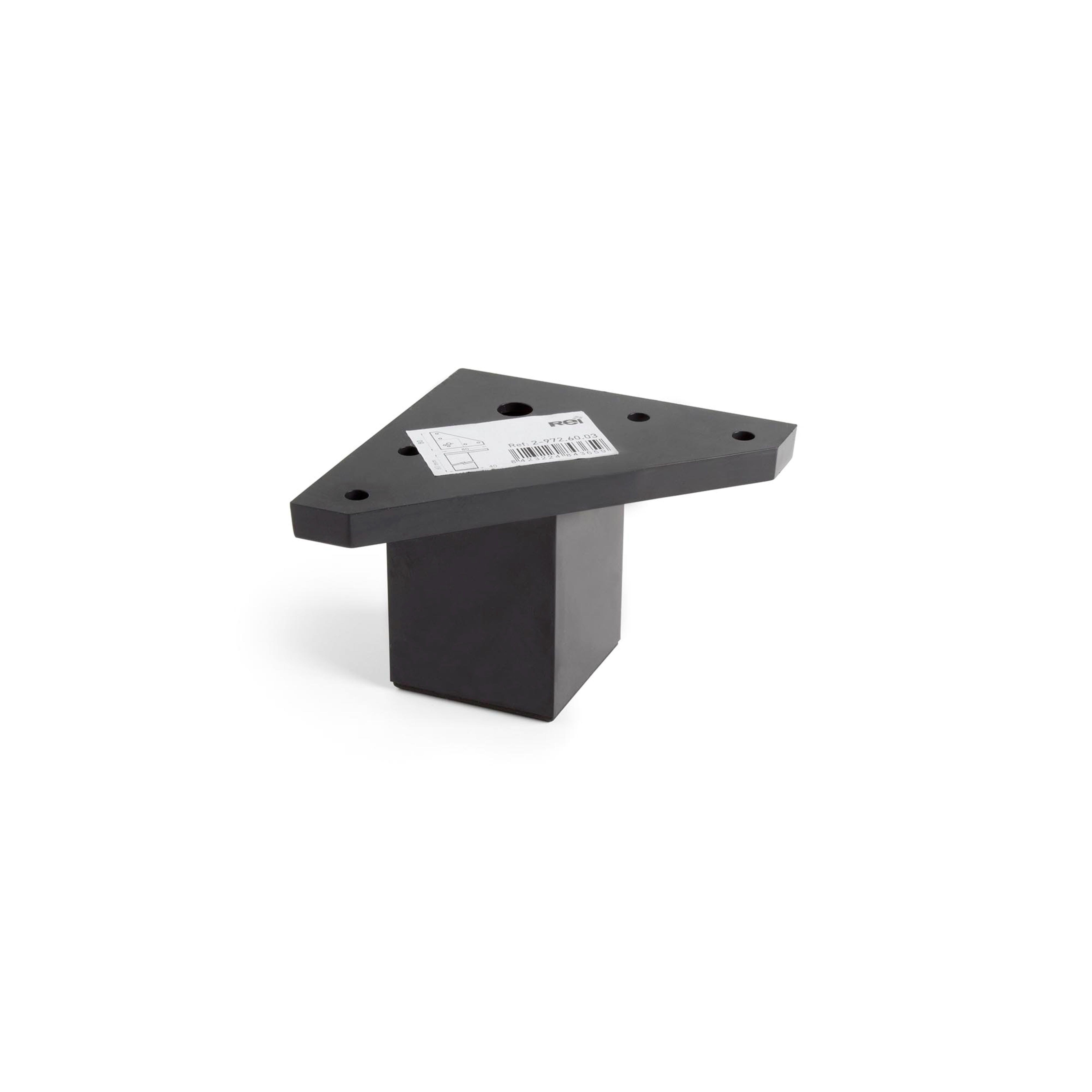 Pata de mueble en plástico ABS acabado negro. Con tapa inferior en plástico negro y cuatro orificios de 5 mm de diámetro para anclaje al mueble. Peso max a soportar 100kg