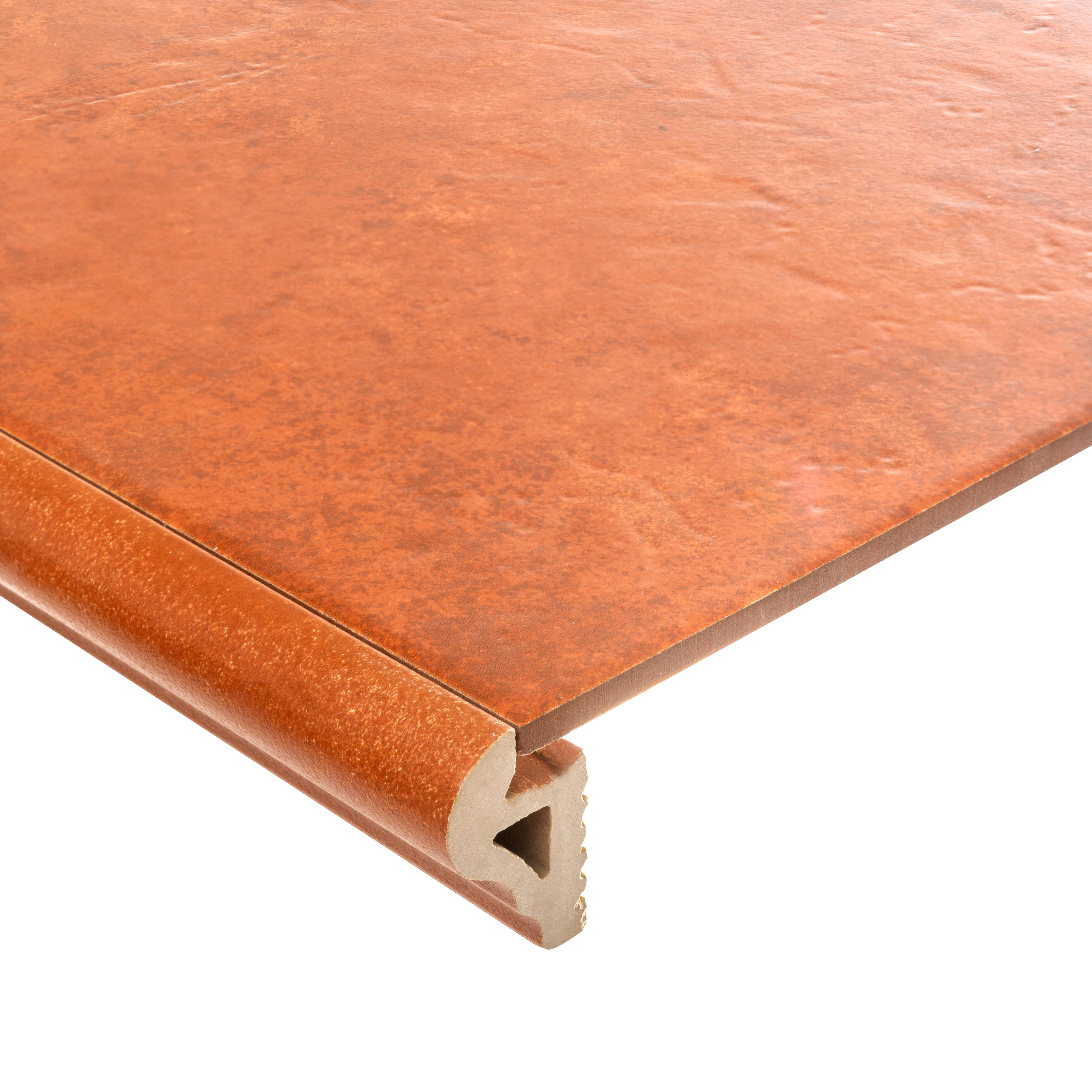 Peldaño gres pasta roja, Nazari Teja tiene un acabado destonificado y aspecto rústico .Formato 33x33 cm. Recomendado uso interior. No es antihielo. Se vende por piezas.