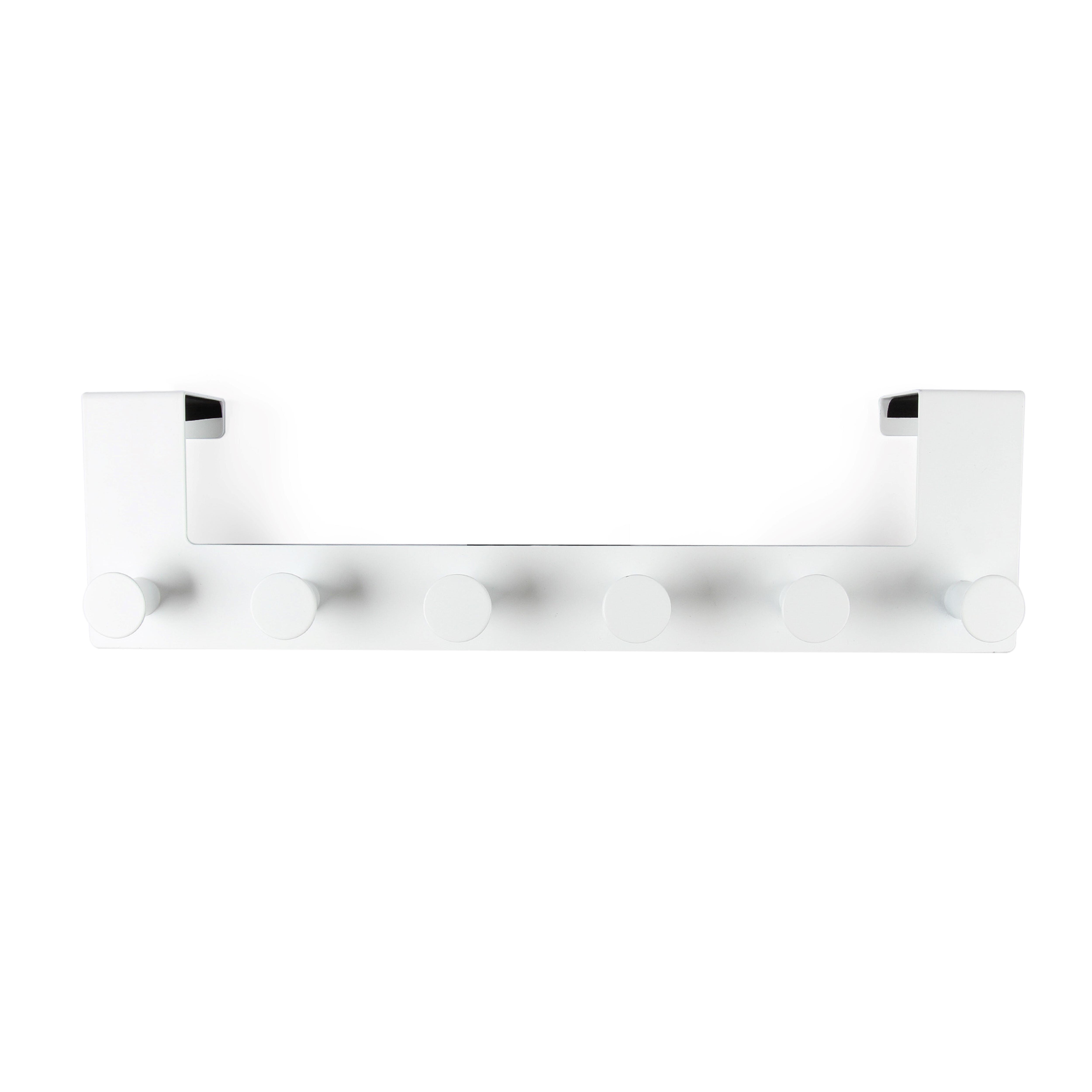 Perchero con 6 ganchos para instalar sobre puerta. Estilo contemporáneo y moderno. Muy versátil e ideal para integrar en todo tipo de estancias y con distintos estilos decorativos. Fabricado en acero en acabado negro mate. Medidas 395x110x50 mm