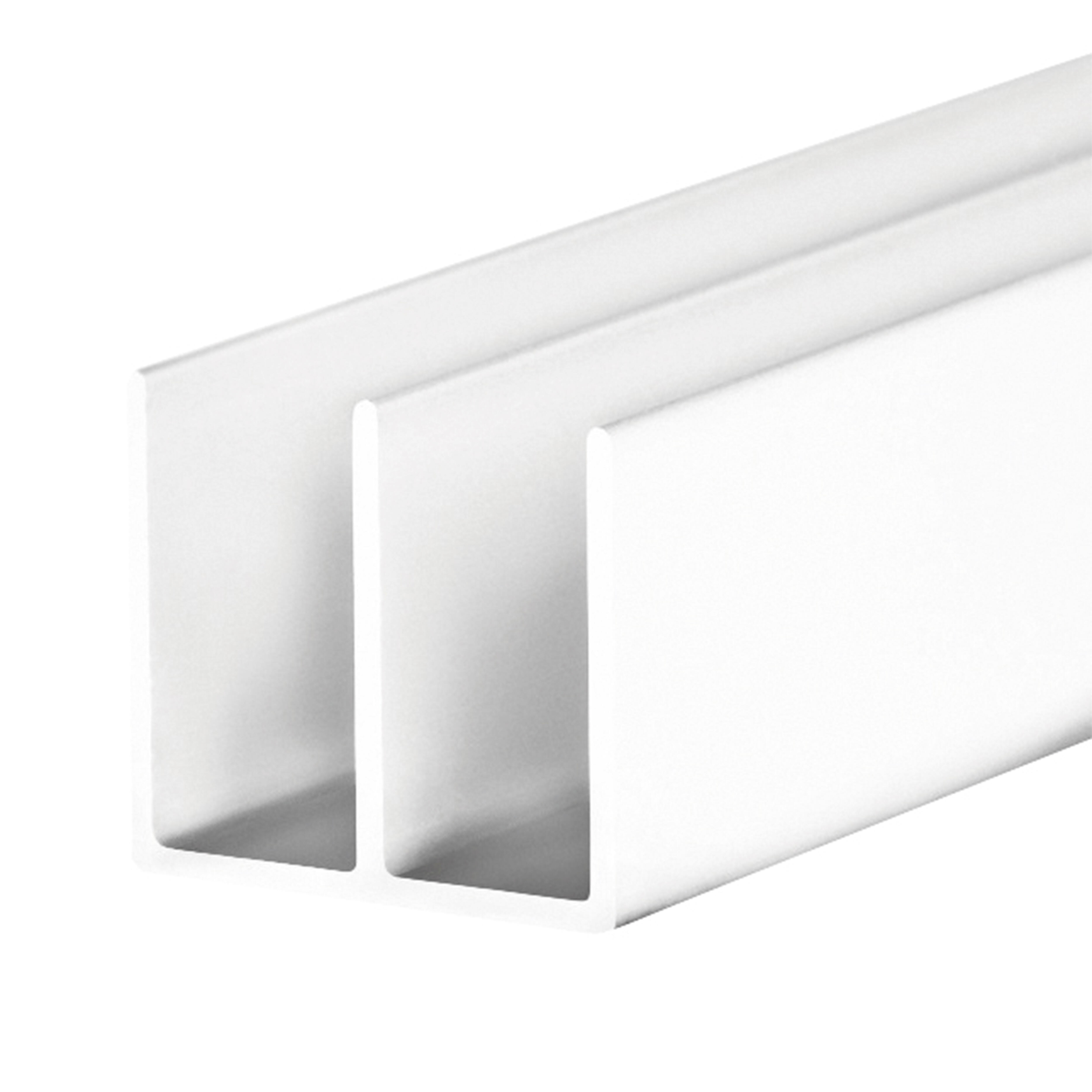 Perfil en forma de doble U Pvc blanco con medidas de alto 18mm, ancho 10mm, grosor 1,6mm y longitud 2m.