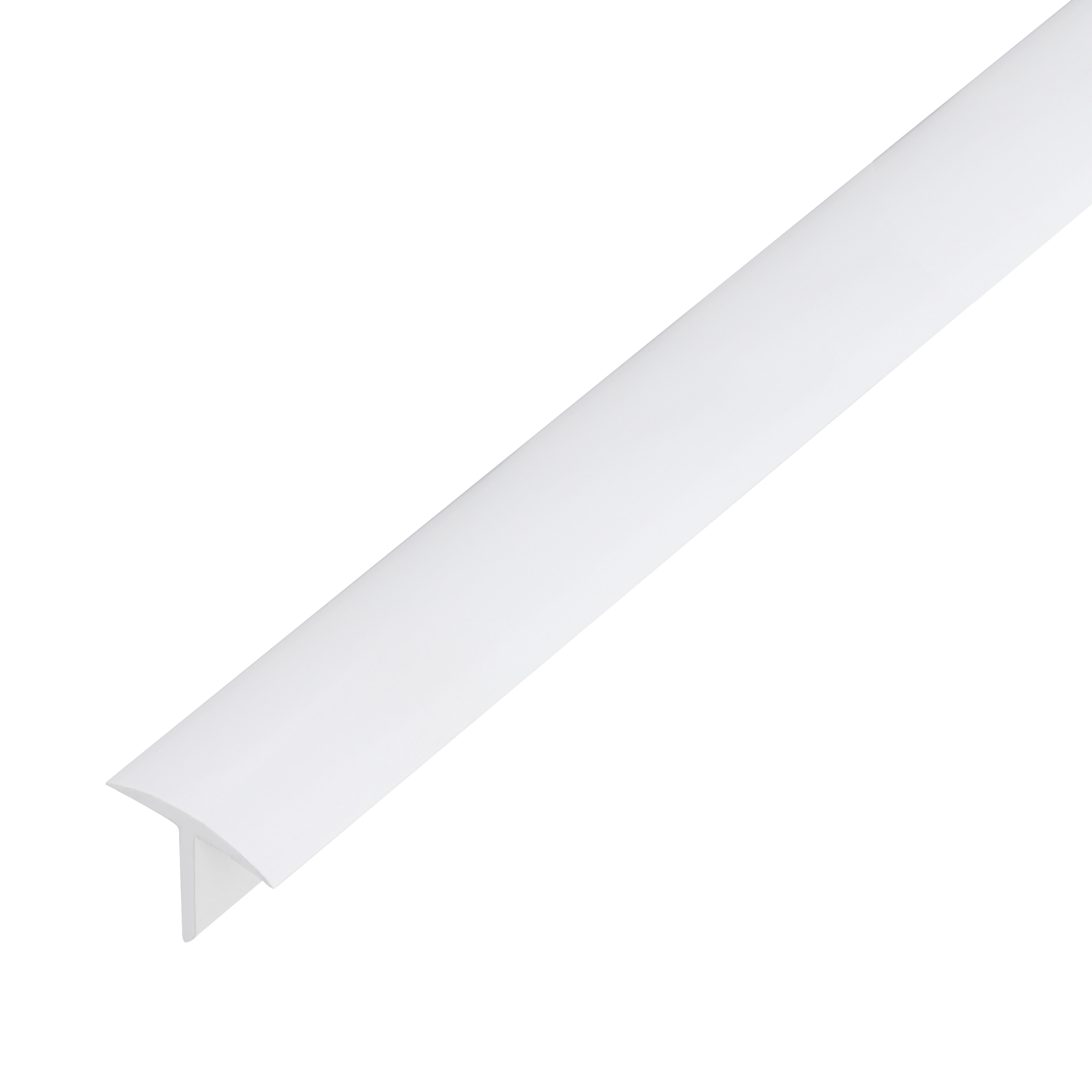 Perfil en forma de T pvc blanco con medidas de alto 25mm, ancho 18mm, grosor 2mm y longitud 2,6m.