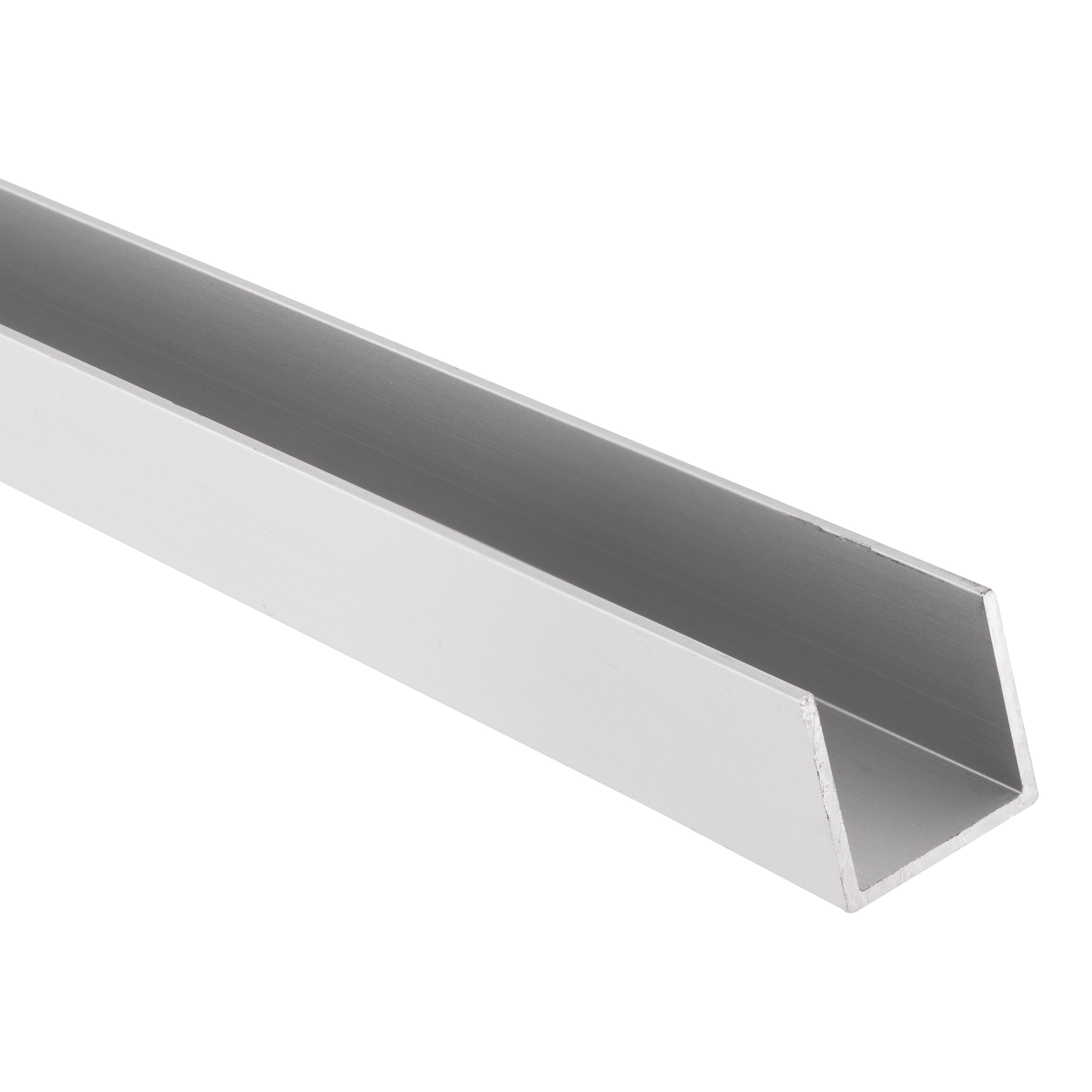 Perfil con forma de U aluminio anodizado con medidas de alto 20mm, ancho 20mm, grosor 1,5mm y longitud 2,6m.
