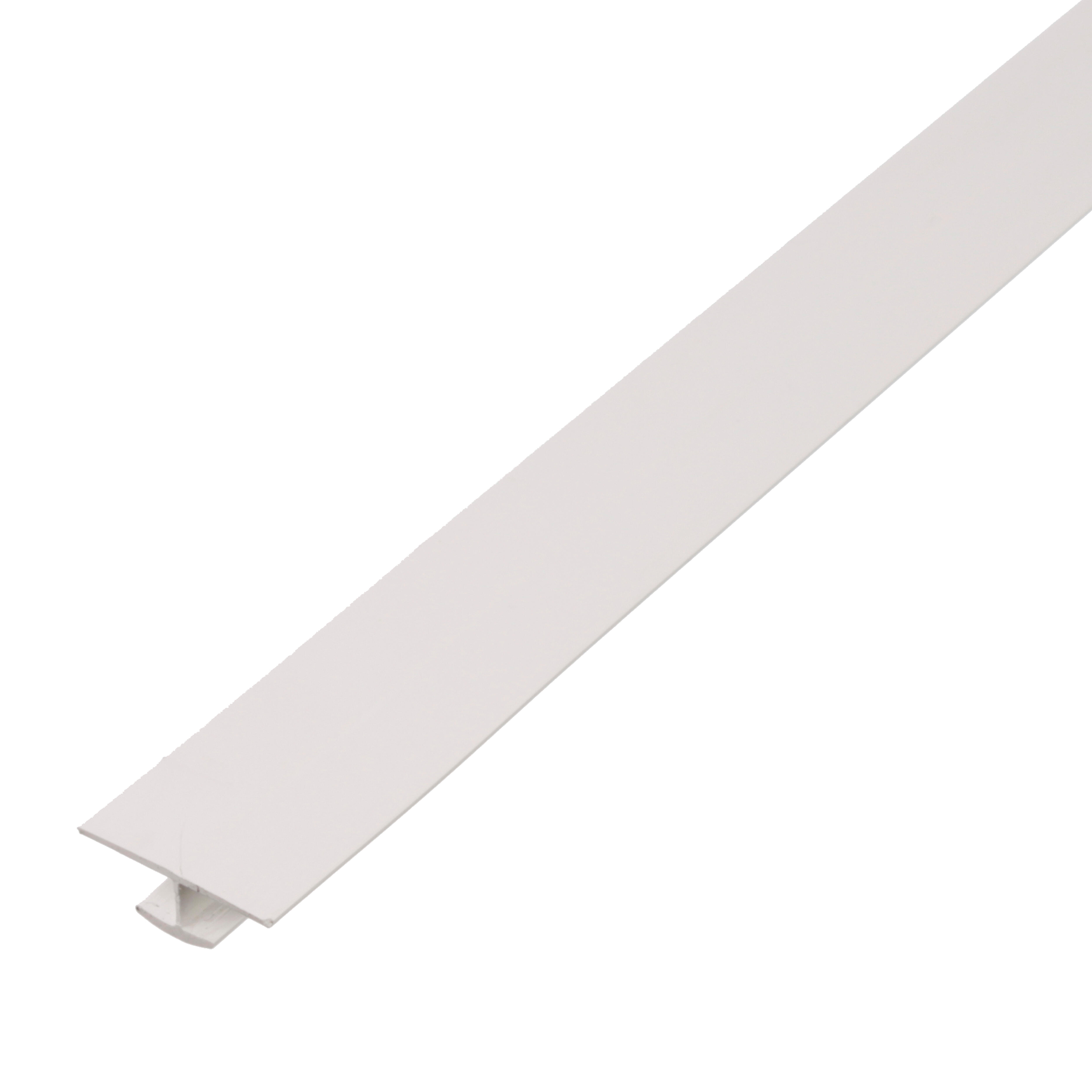 Perfil en forma de H pvc blanco con medidas de alto 25mm y 12mm, ancho 4mm, grosor 1mm y longitud 2,6m.