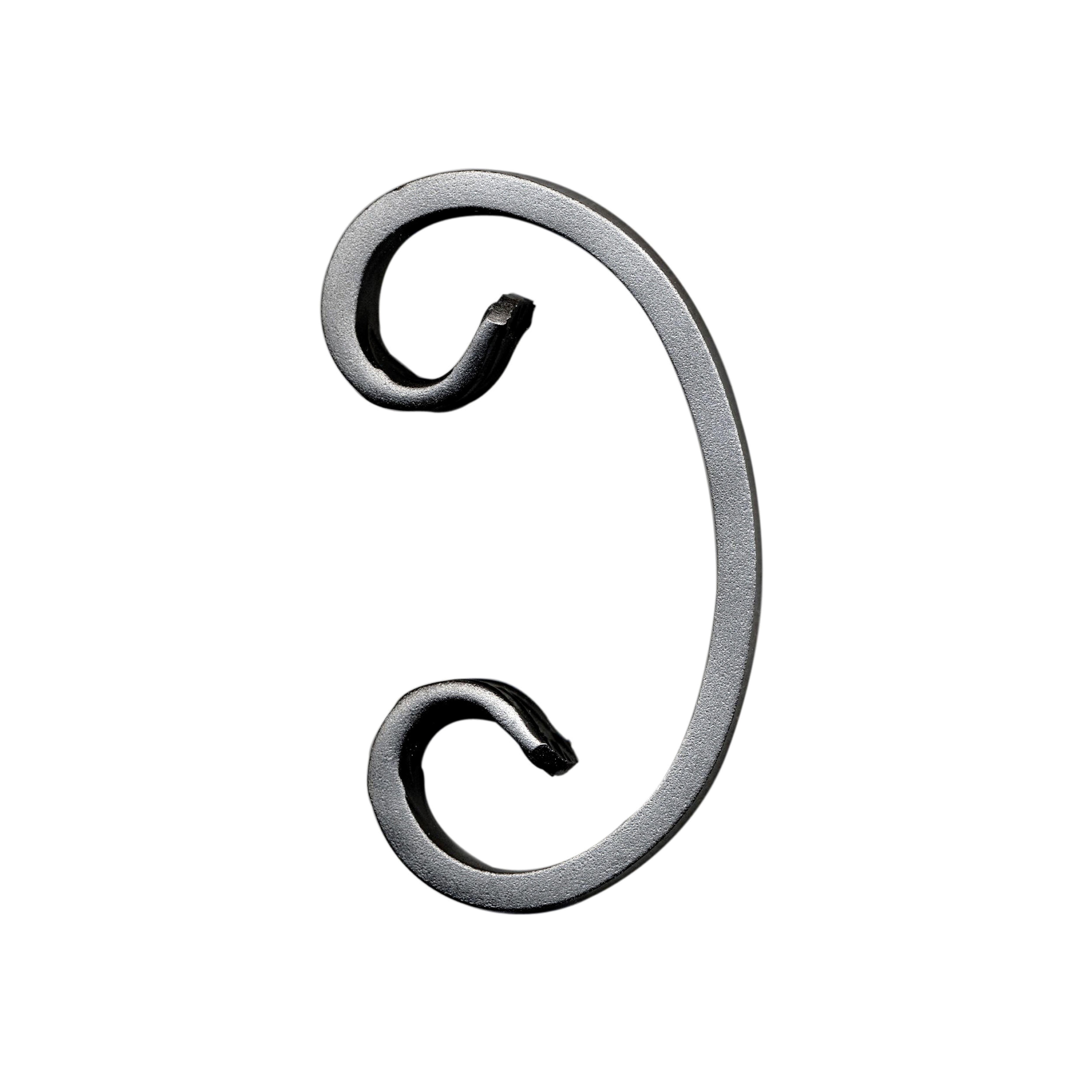 Perfil hierro forjado rizo en forma de C con medidas de alto 60mm, ancho 110mm y sección 12x6mm.