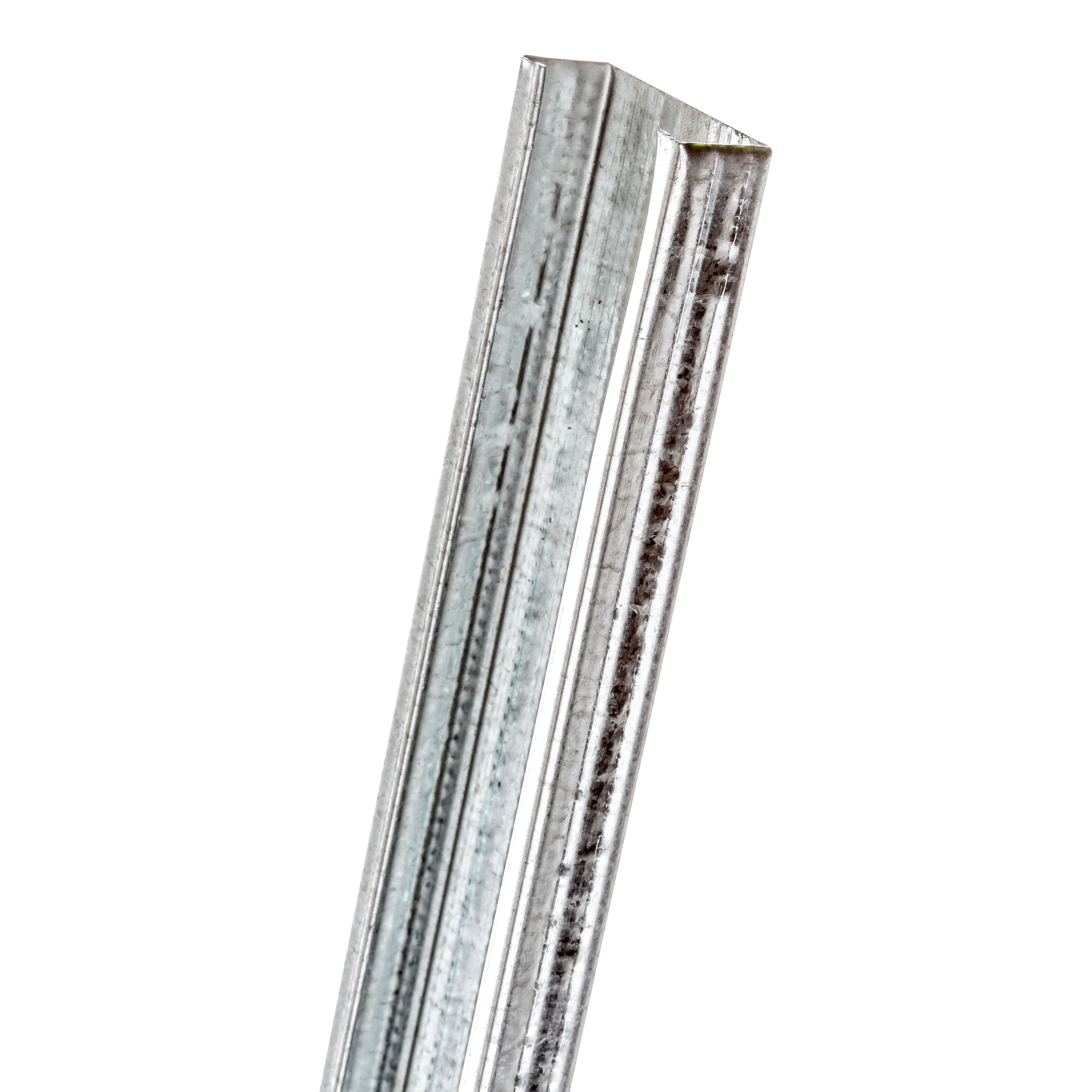 Perfil para techo contínuo TC47 de 3 m en forma de "U" de acero galvanizado con 47 mm de espesor. Elemento portante donde la cara de contacto con la placa tiene un moleteado contínuo y marcado de eje.